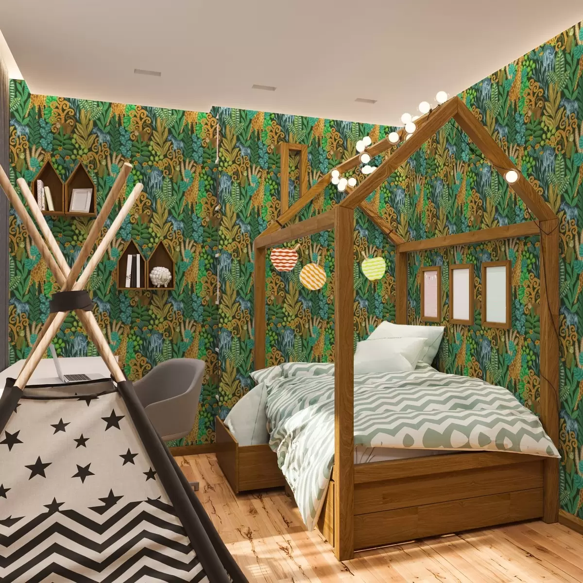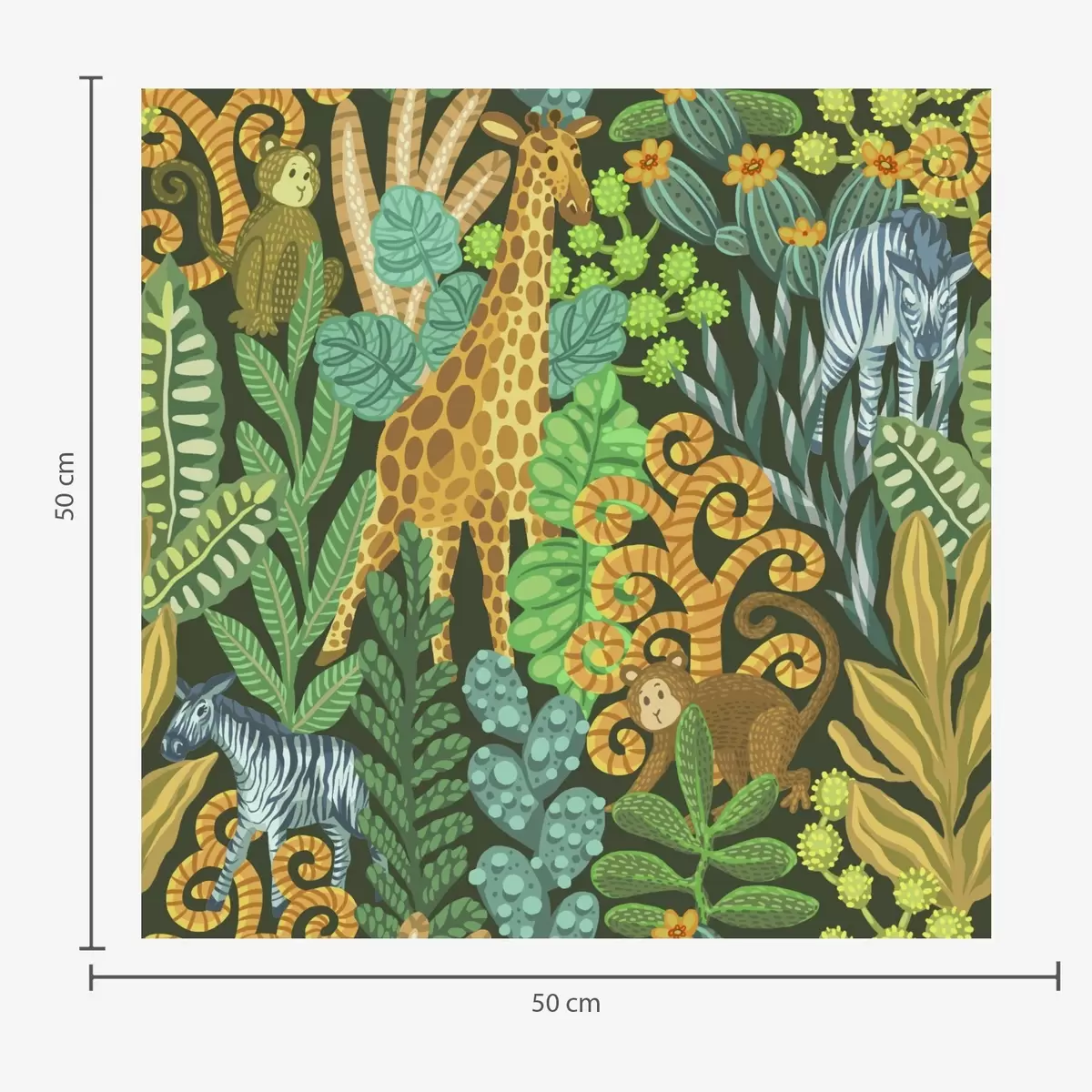 Tapet Junglă densă cu animale pe un fundal verde închis Nr. a01000v2
