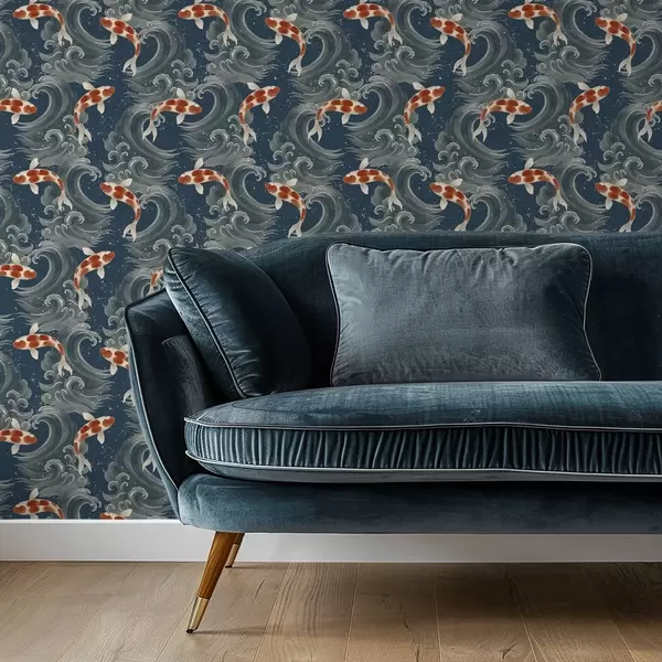 Tapet Pești koi înotând printre valurile dramatice ale oceanului Nr. a01019