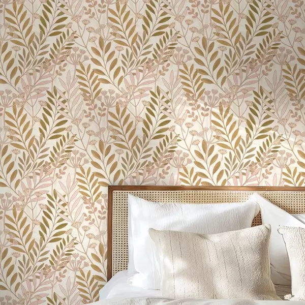 Tapet Model botanic ușor, cu frunze delicate în nuanțe de roz și ovăz Nr. a01020v1