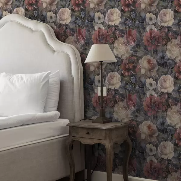 Tapet Buchet pictural de flori mari pe fundal indigo intens Nr. a01021