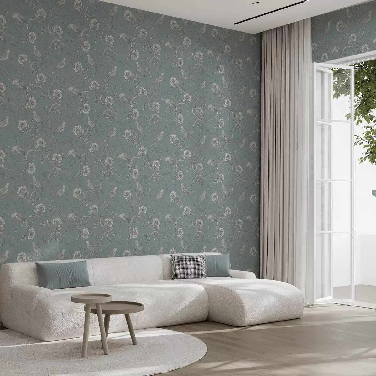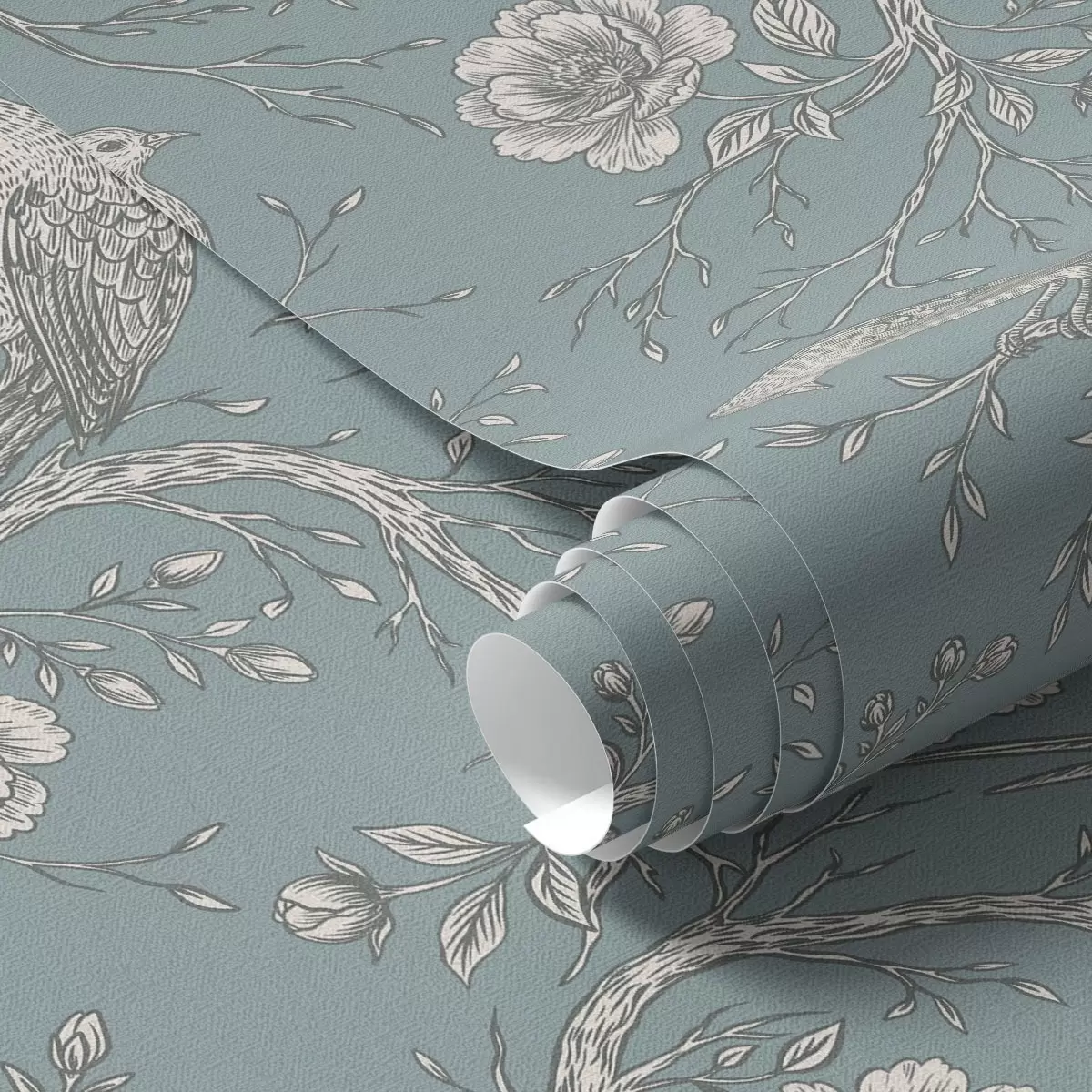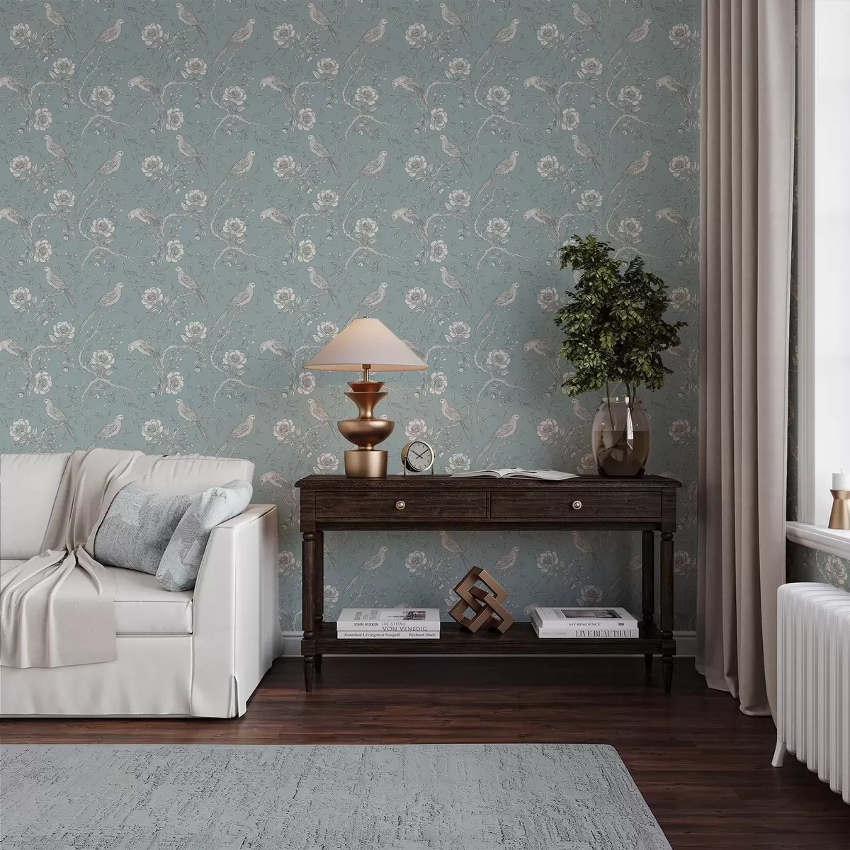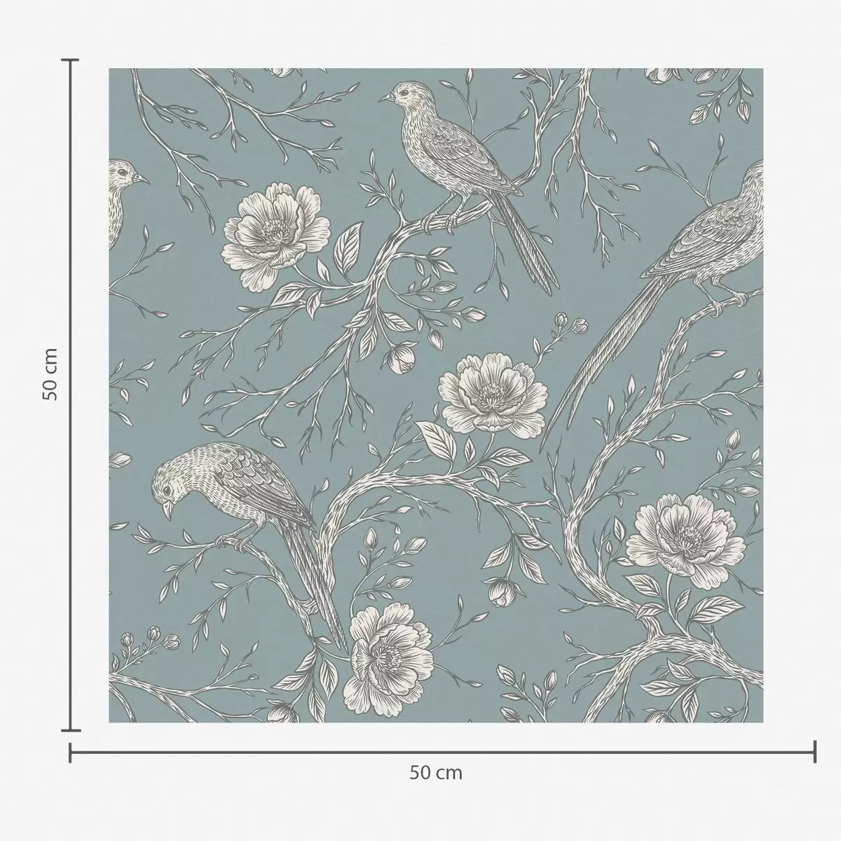 Tapet Păsări desenate pe ramuri, fundal albastru estompat Nr. a01022