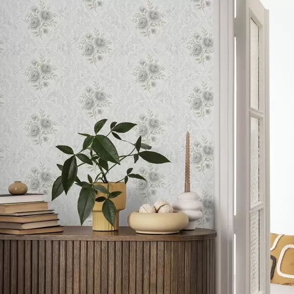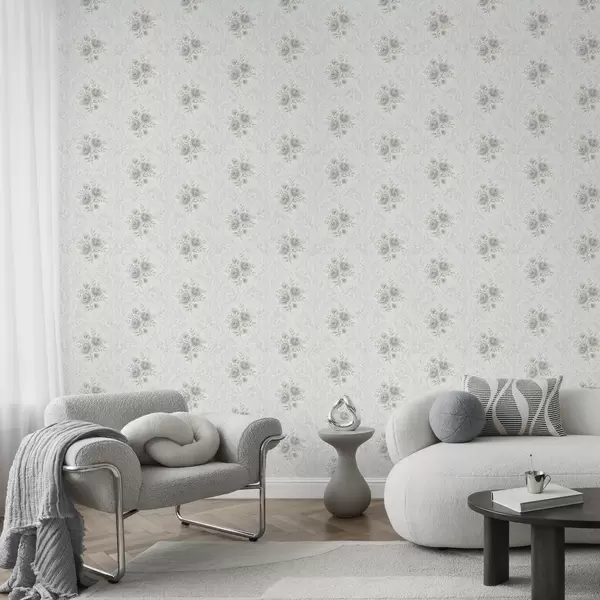 Tapet Model damasc ușor cu trandafiri gri în romburi delicate Nr. a01024