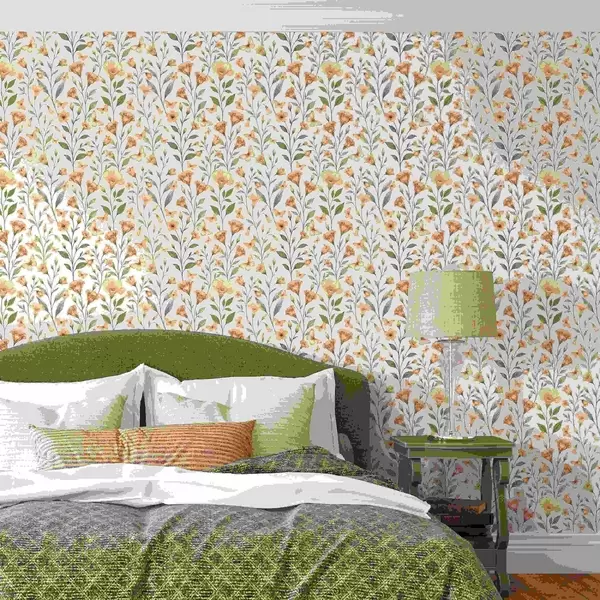 Tapet Flori delicate de piersic și fluturi pe un fundal crem cald Nr. a01026