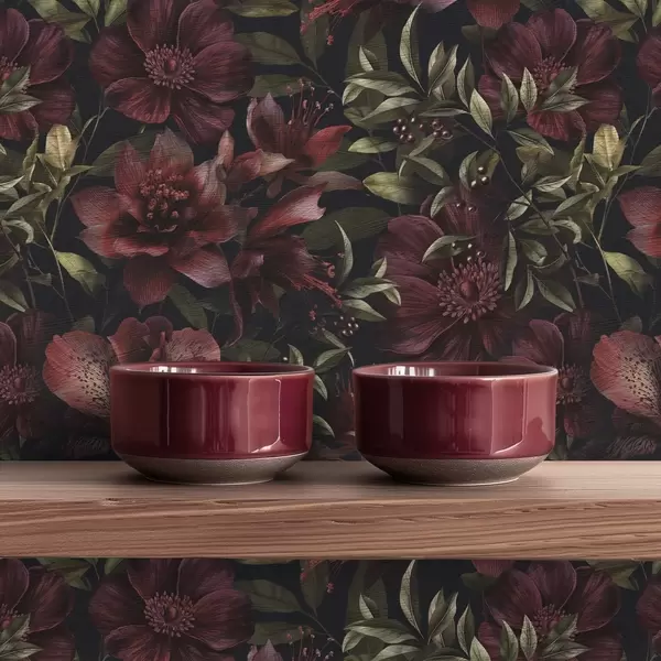 Tapet Flori bogate de culoare burgund pe un fundal întunecat Nr. a01032