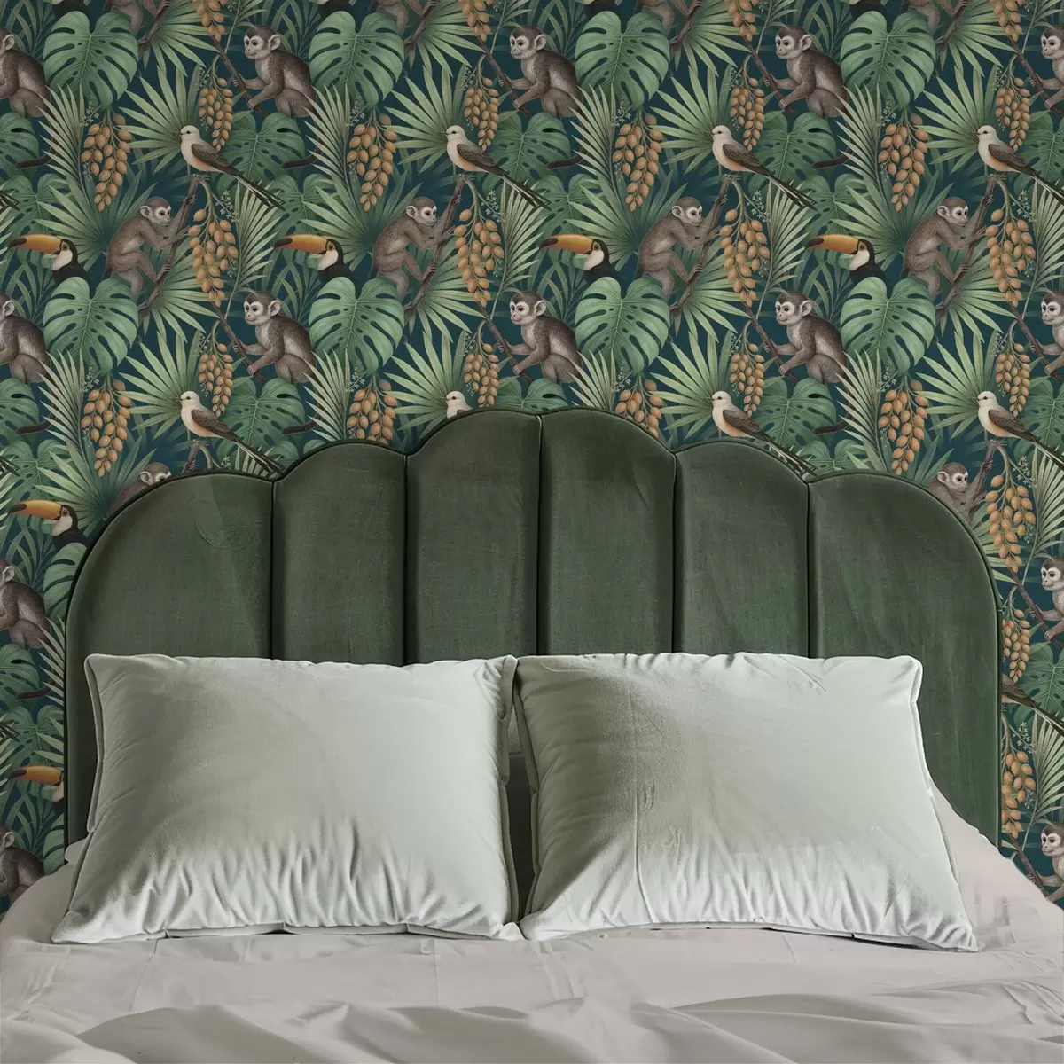Tapet Maimuțe și păsări tropicale în vegetația densă a junglei Nr. a01037