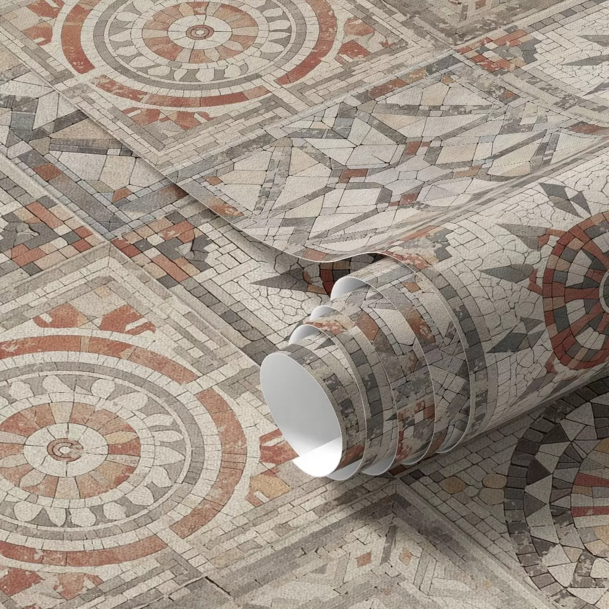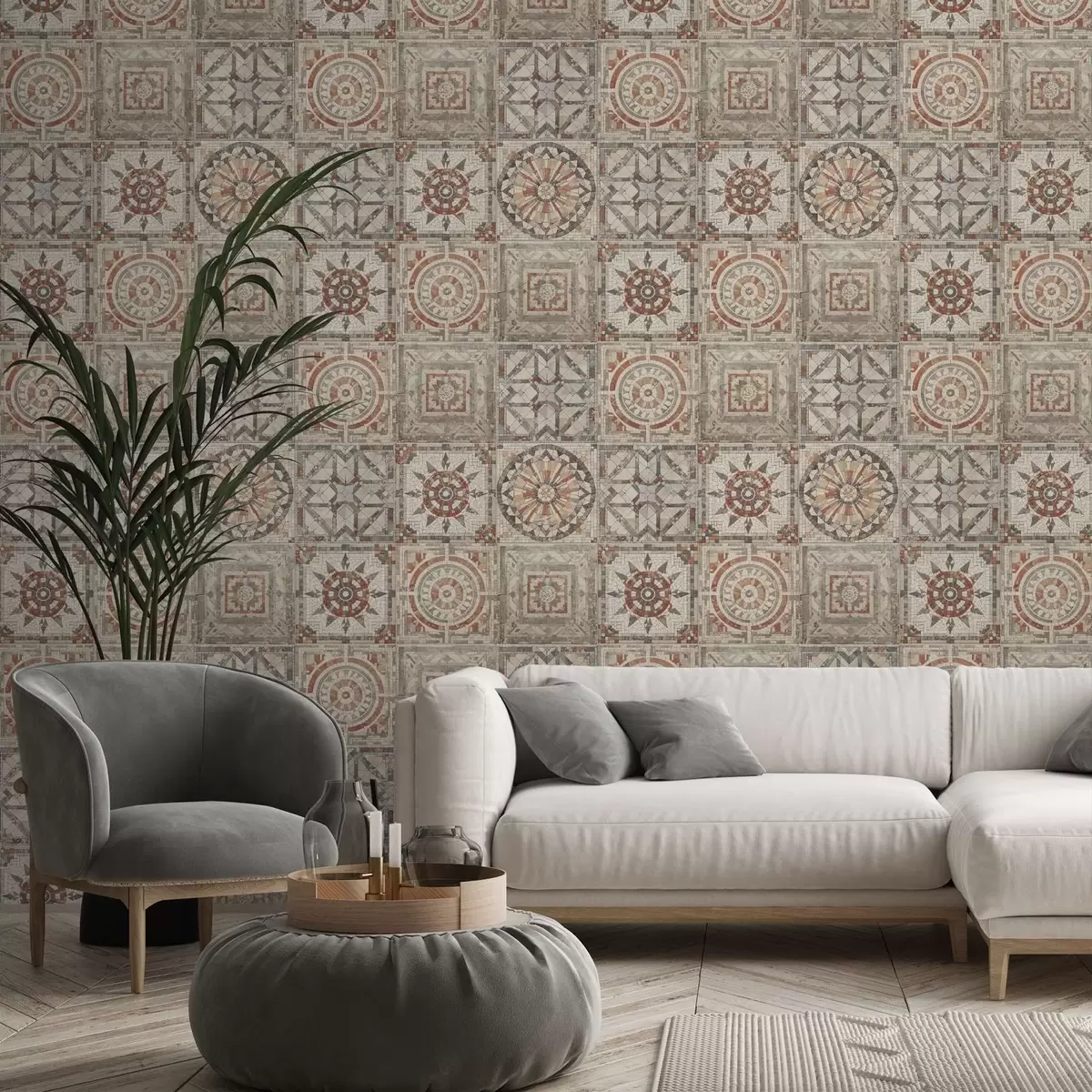 Tapet Medalioane vechi din mozaic de piatră cu detalii uzate Nr. a01042