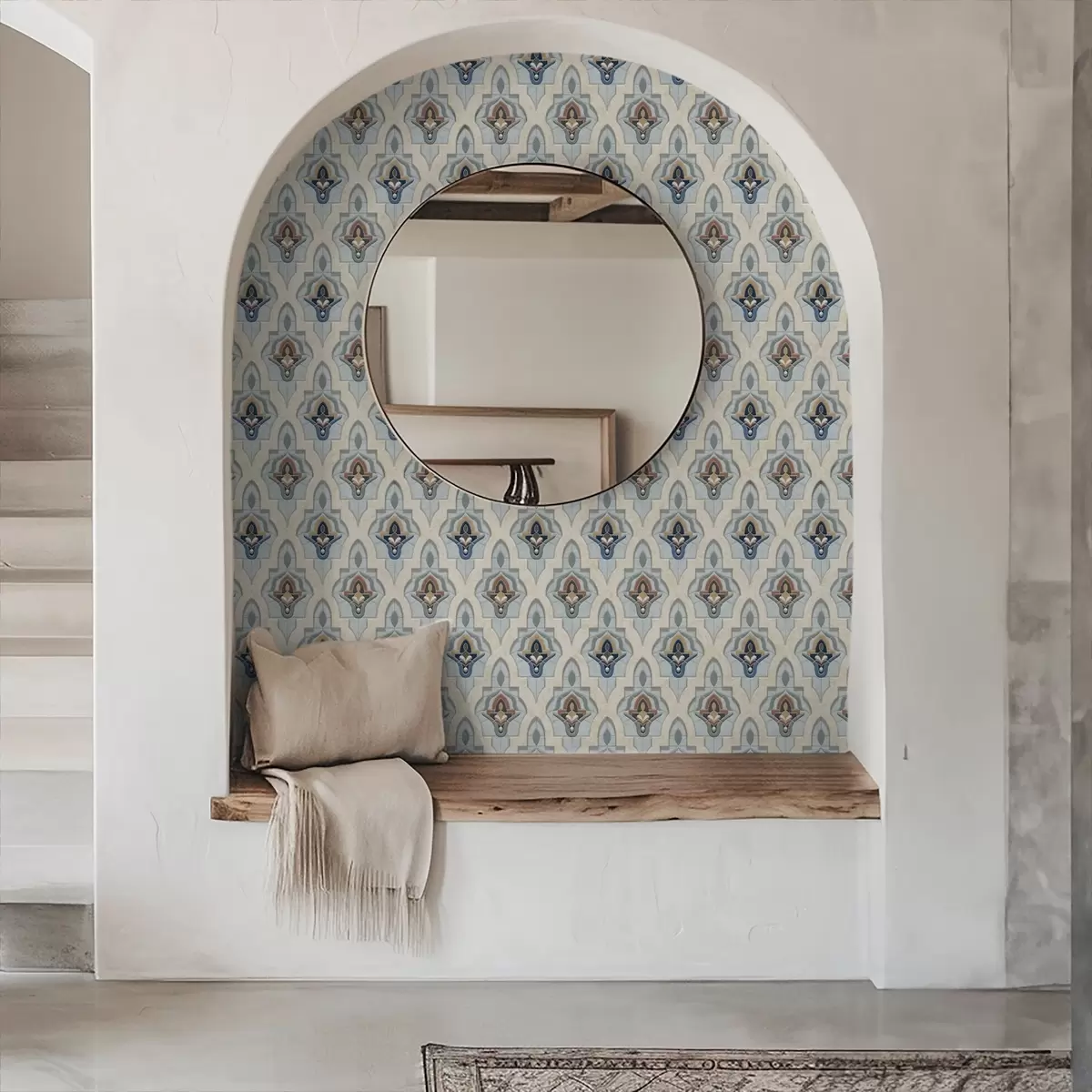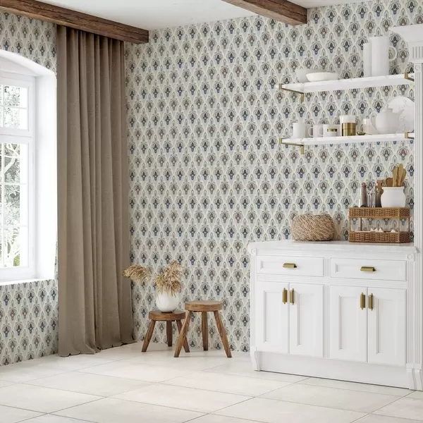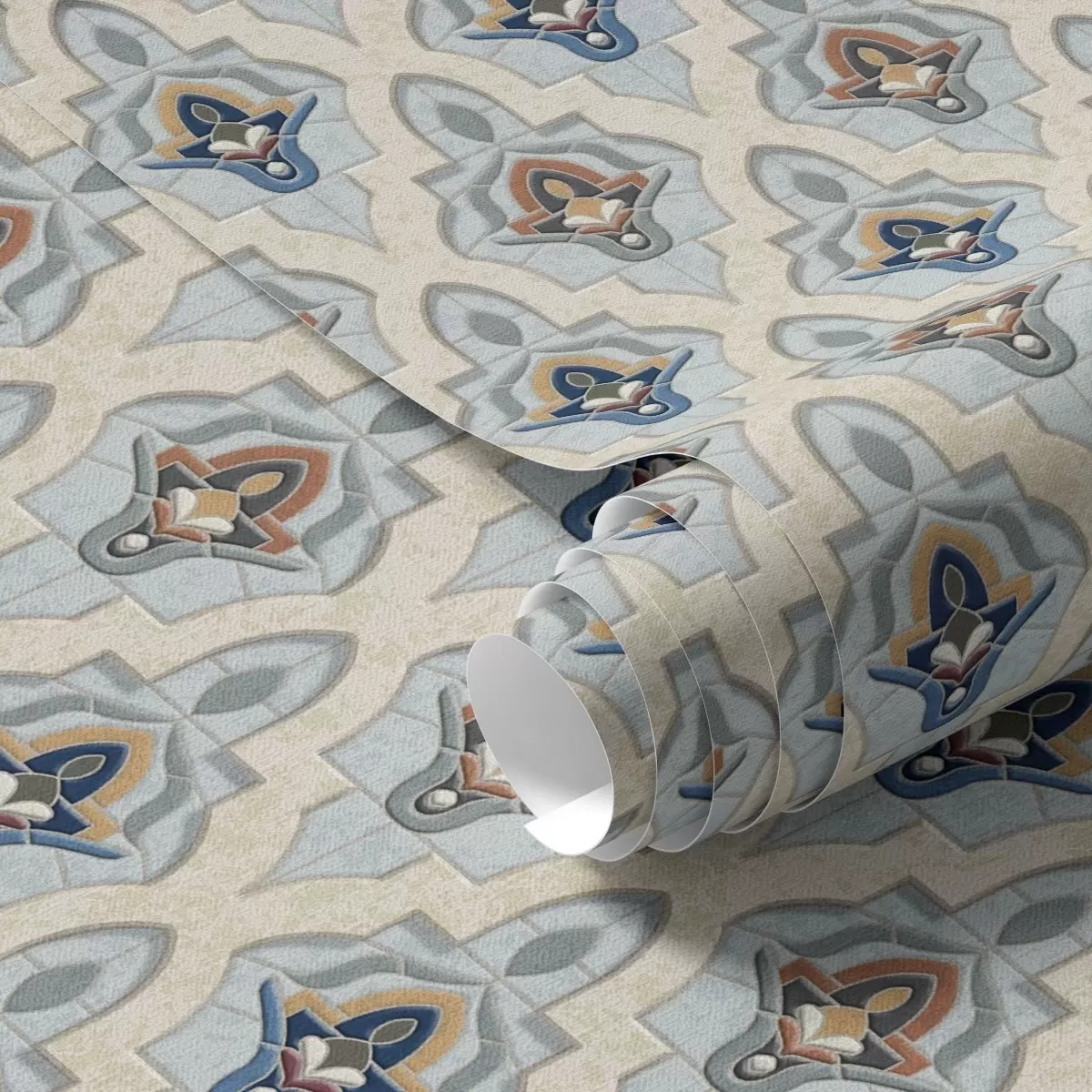 Tapet Model oriental din plăci mici într-o paletă de culori albastru-nisipiu Nr. a01044