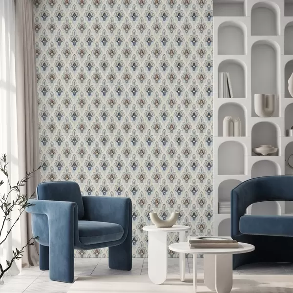 Tapet Model oriental din plăci mici într-o paletă de culori albastru-nisipiu Nr. a01044