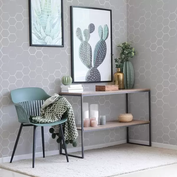 Tapet Hexagoane tridimensionale de culoare gri deschis, cu umbre delicate Nr. a01059v1