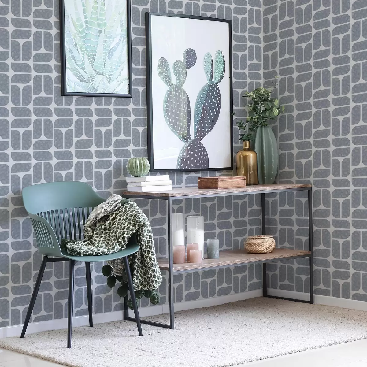 Tapet Mozaic gri cu forme rotunjite și dreptunghiulare alternante Nr. a01069
