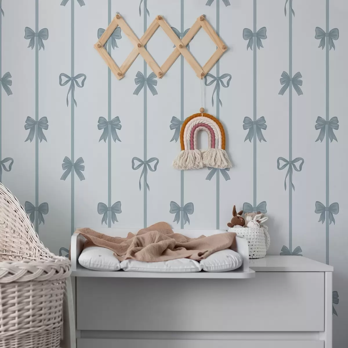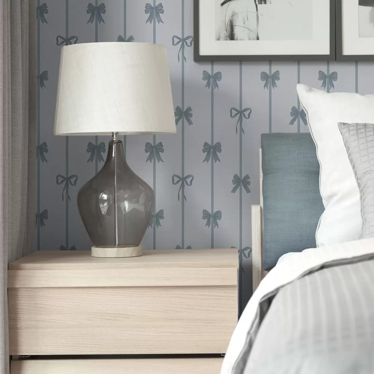 Tapet Fundele albastre cu panglici pe un fundal deschis Nr. a01074v2