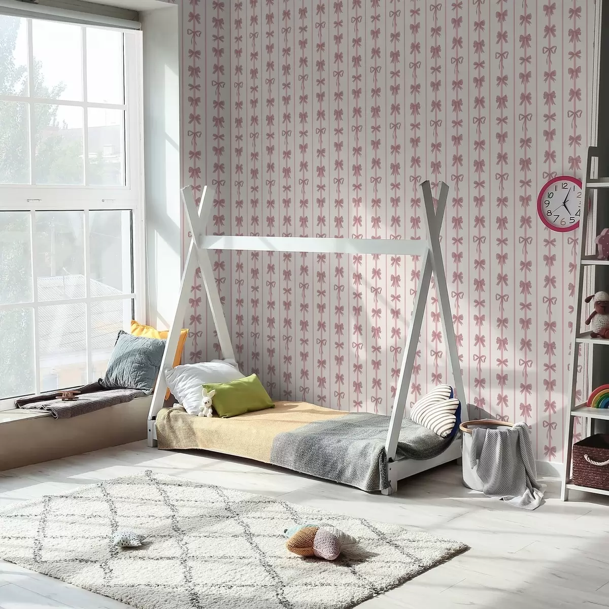 Tapet Fundele roz dispuse în dungi verticale pe un fundal deschis Nr. a01075