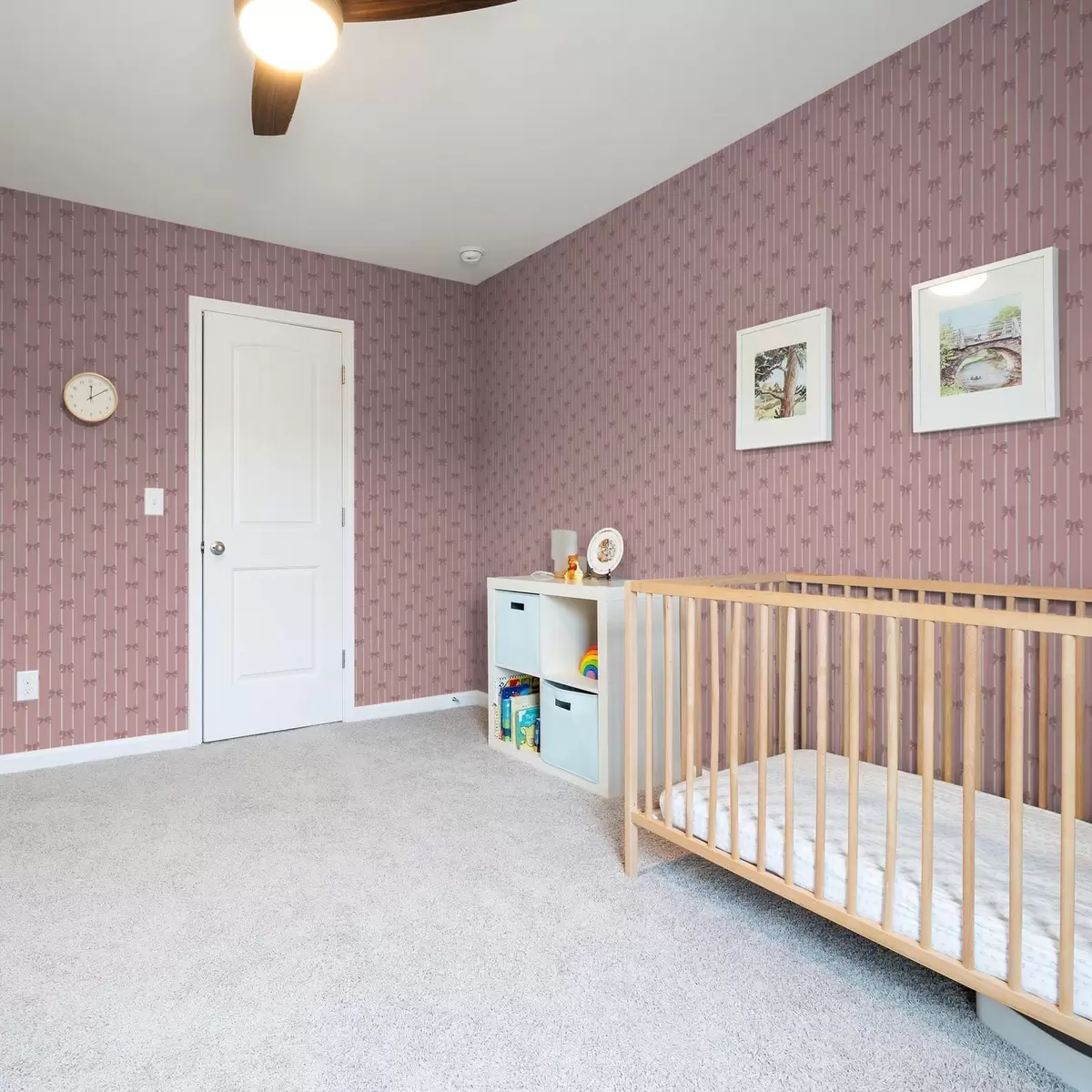 Tapet Fundioare mici roz pe un fundal cu dungi roz Nr. a01076v1