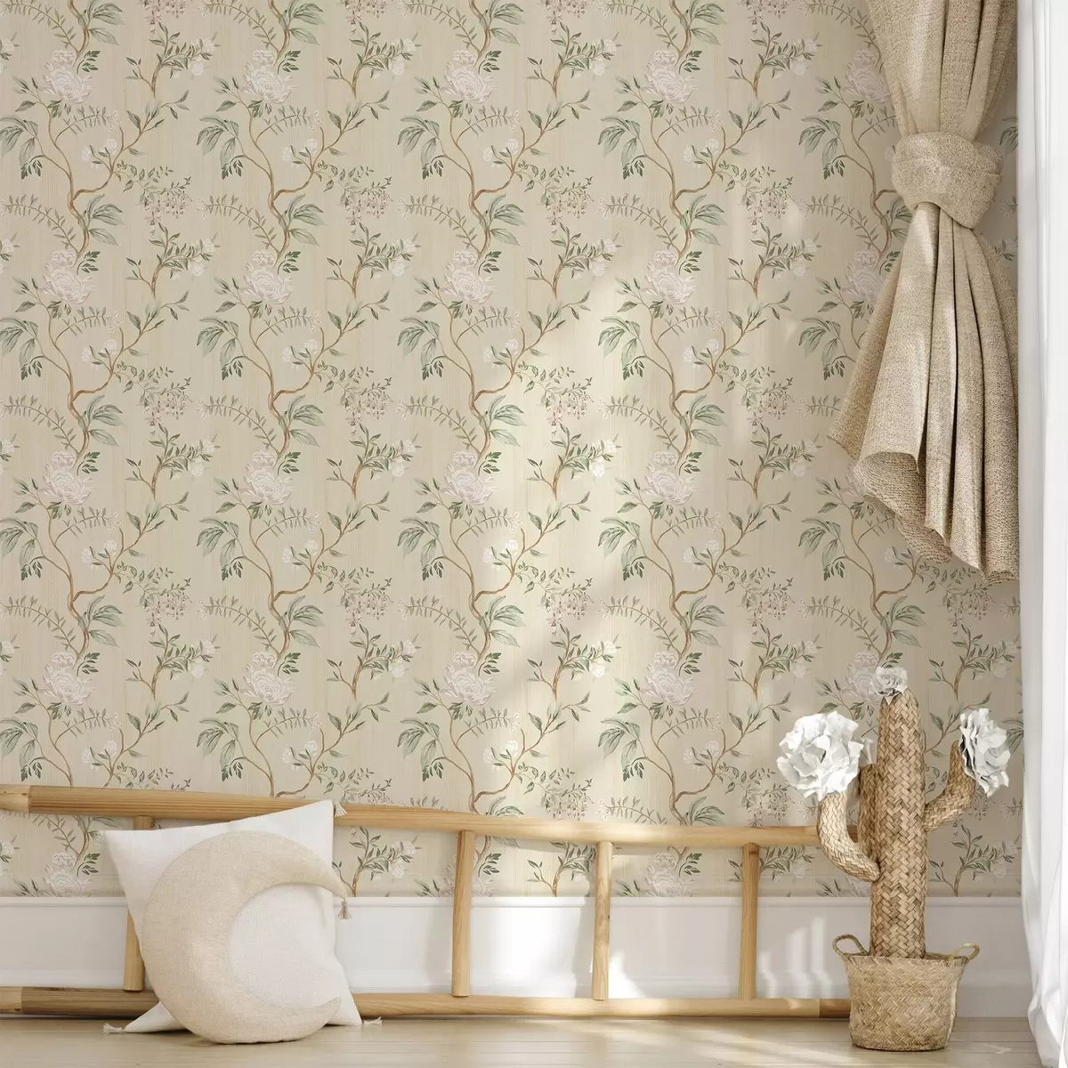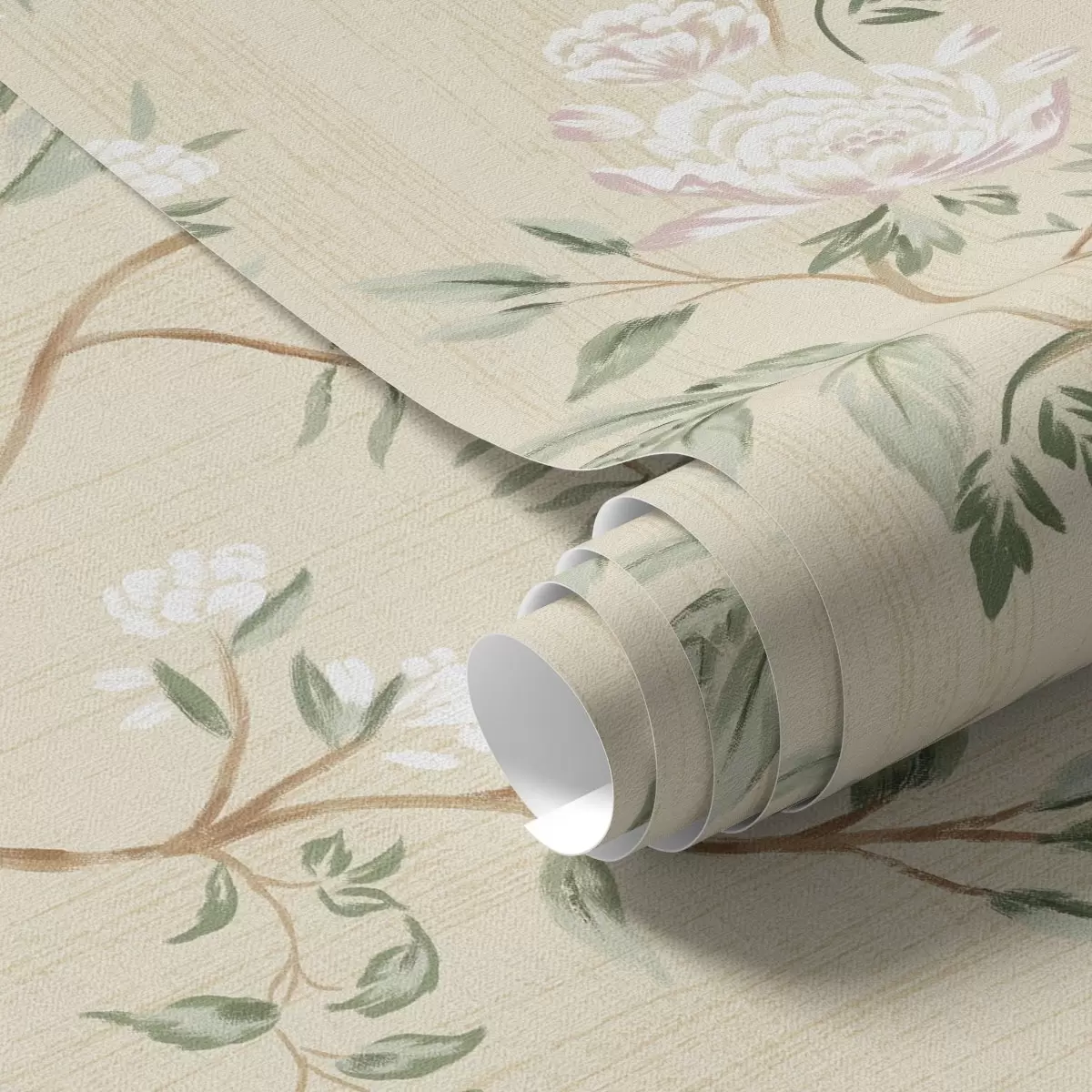 Tapet Ramuri delicate cu flori pe un fundal crem cald Nr. a01084