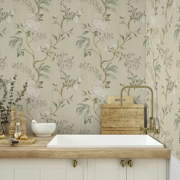 Tapet Ramuri delicate cu flori pe un fundal crem cald Nr. a01084