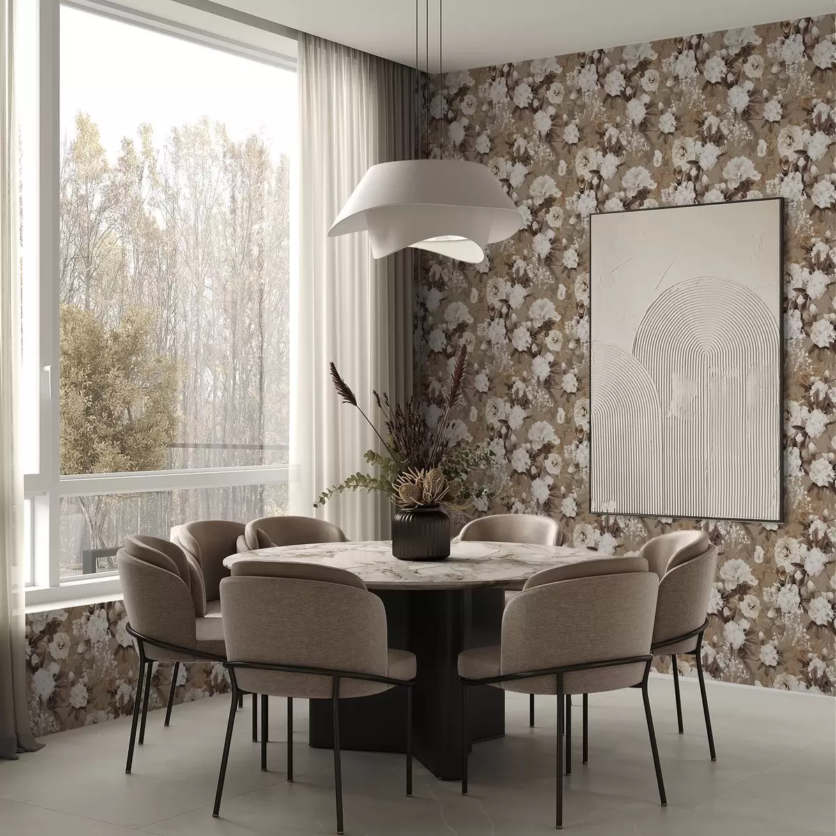 Tapet Bujori bej calzi pe un fundal texturat Nr. a01087