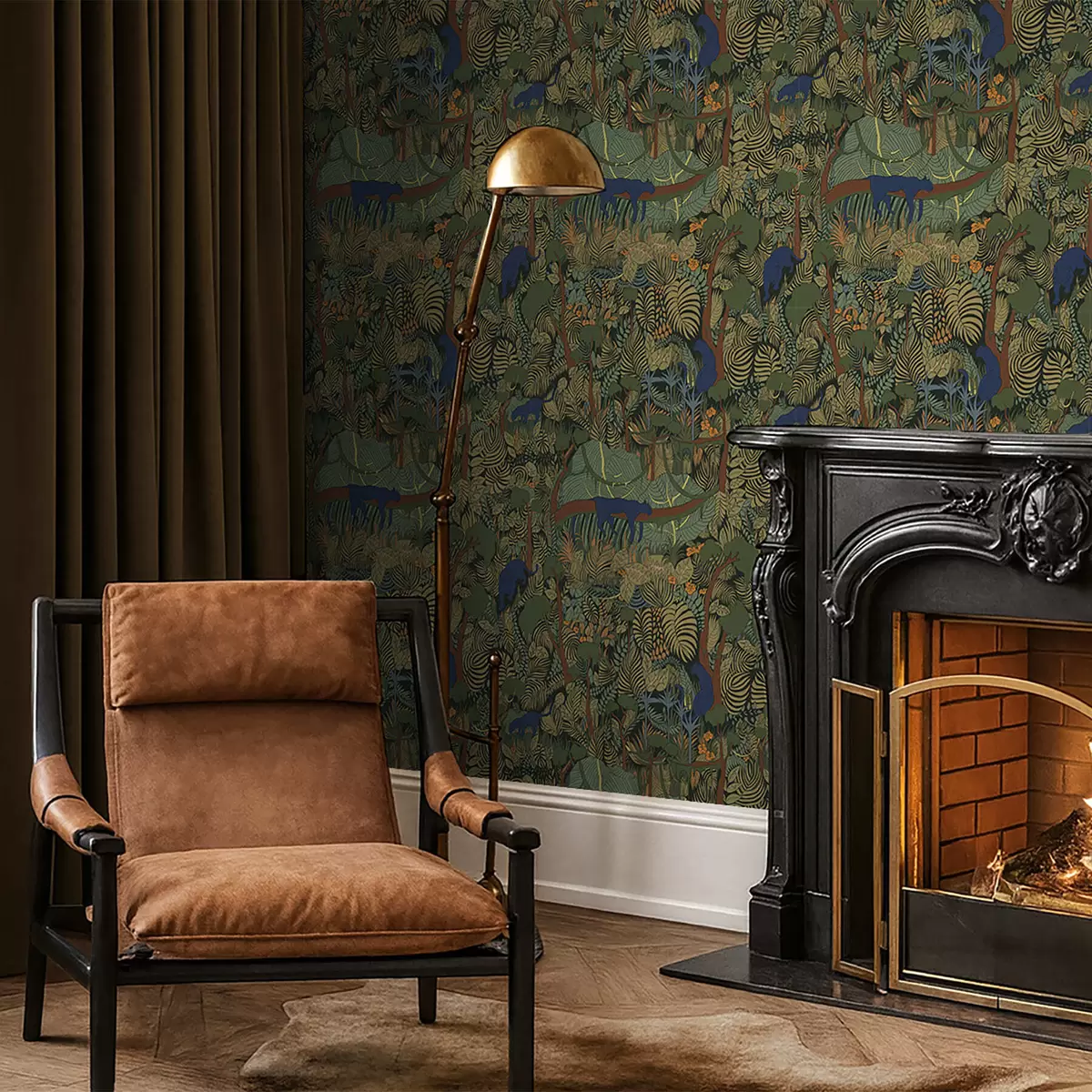 Tapet Pădure întunecată cu animale Nr. a01108v1
