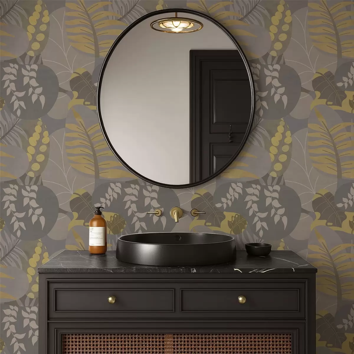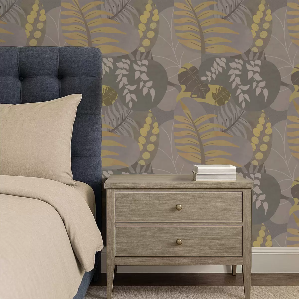 Tapet Frunze abstracte în tonuri de gri și galben Nr. a01112