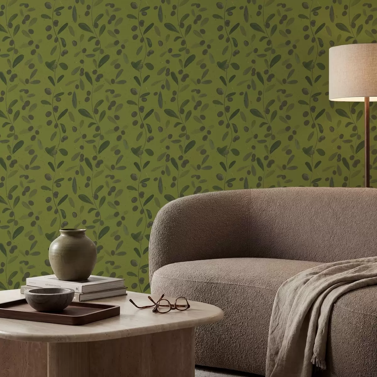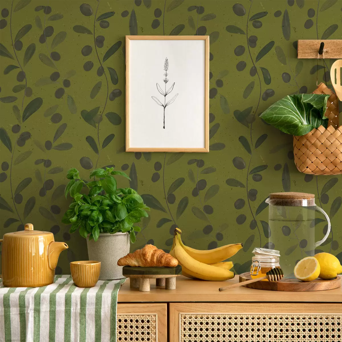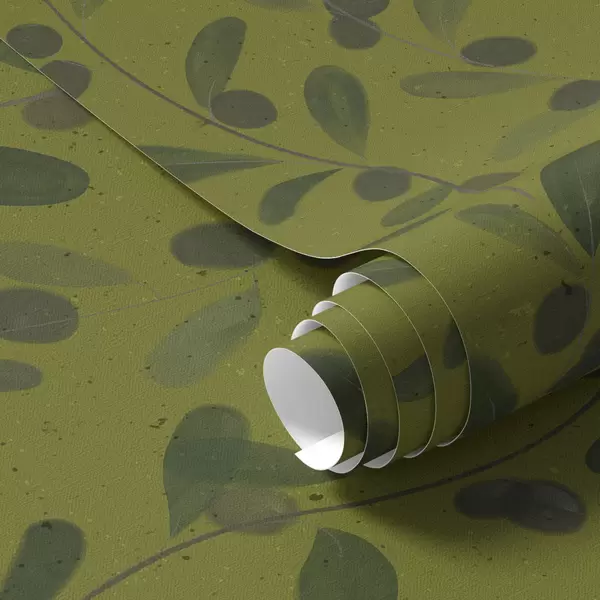 Tapet Ramuri verzi cu frunze și fructe de pădure pe măslin Nr. a01113