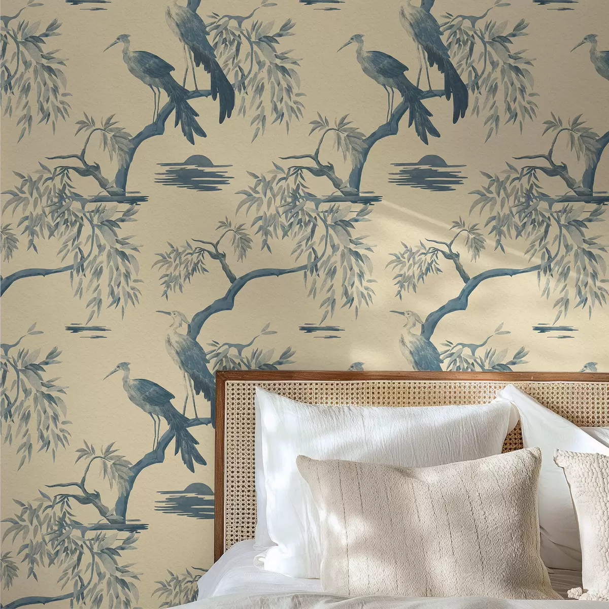 Tapet Păsări pe o ramură în tonuri de albastru Nr. a01116