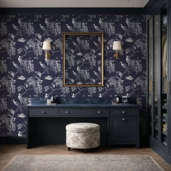 Tapet Păsări pe ramură pe fundal albastru închis Nr. a01116v1