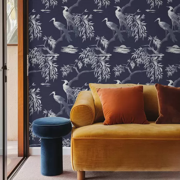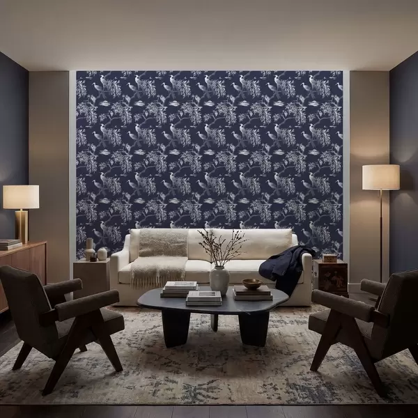 Tapet Păsări pe ramură pe fundal albastru închis Nr. a01116v1