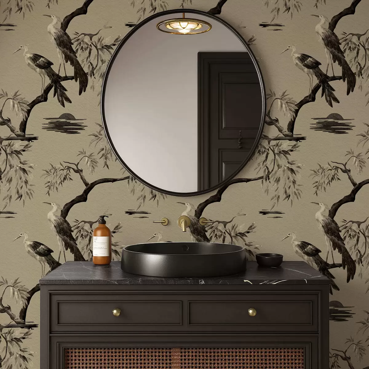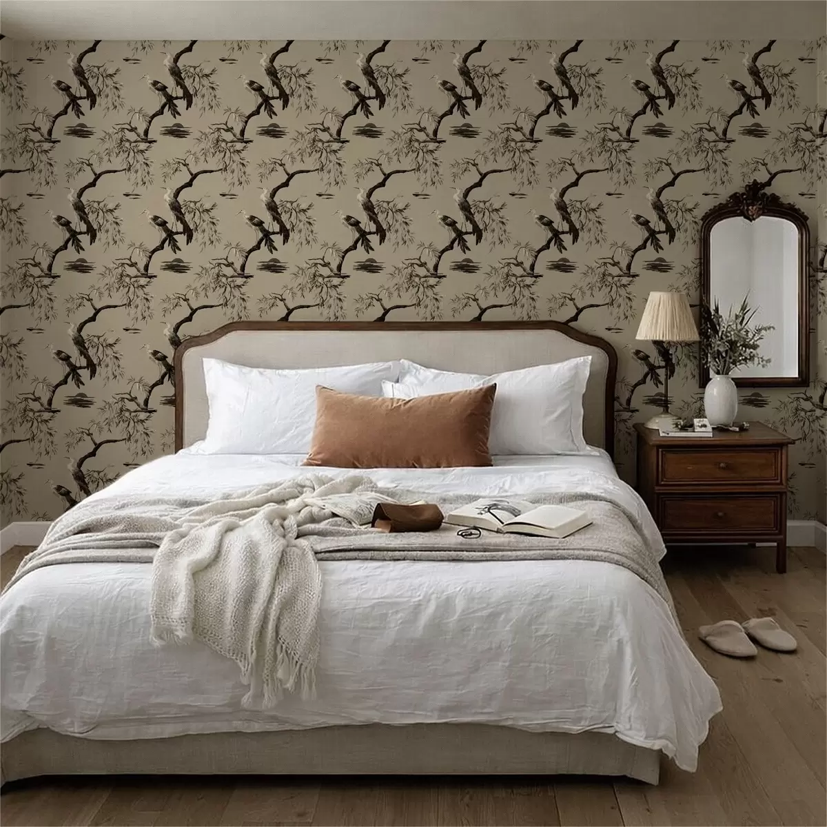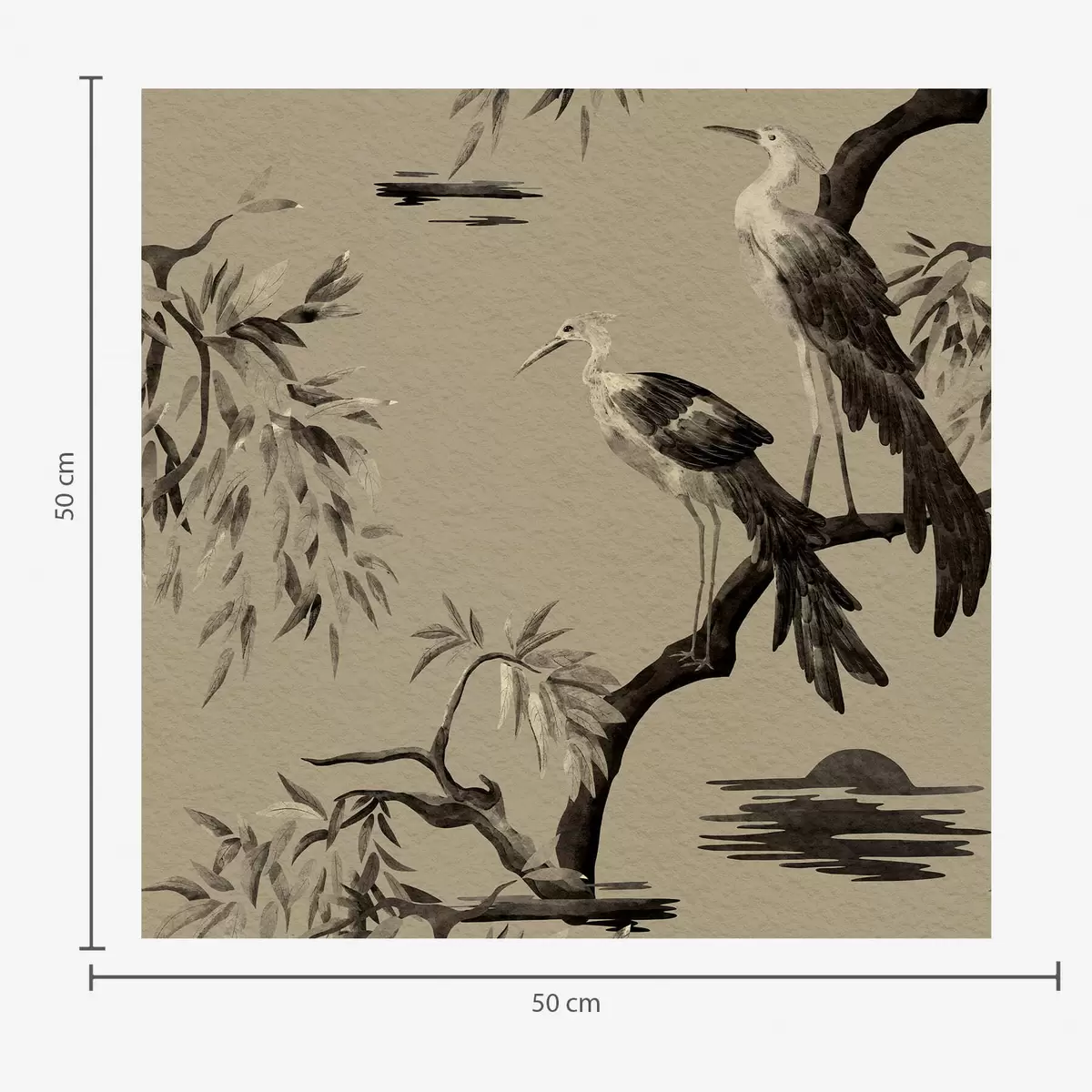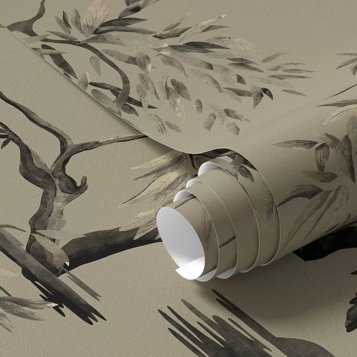 Tapet Păsări pe ramură în tonuri monocrome Nr. a01116v2