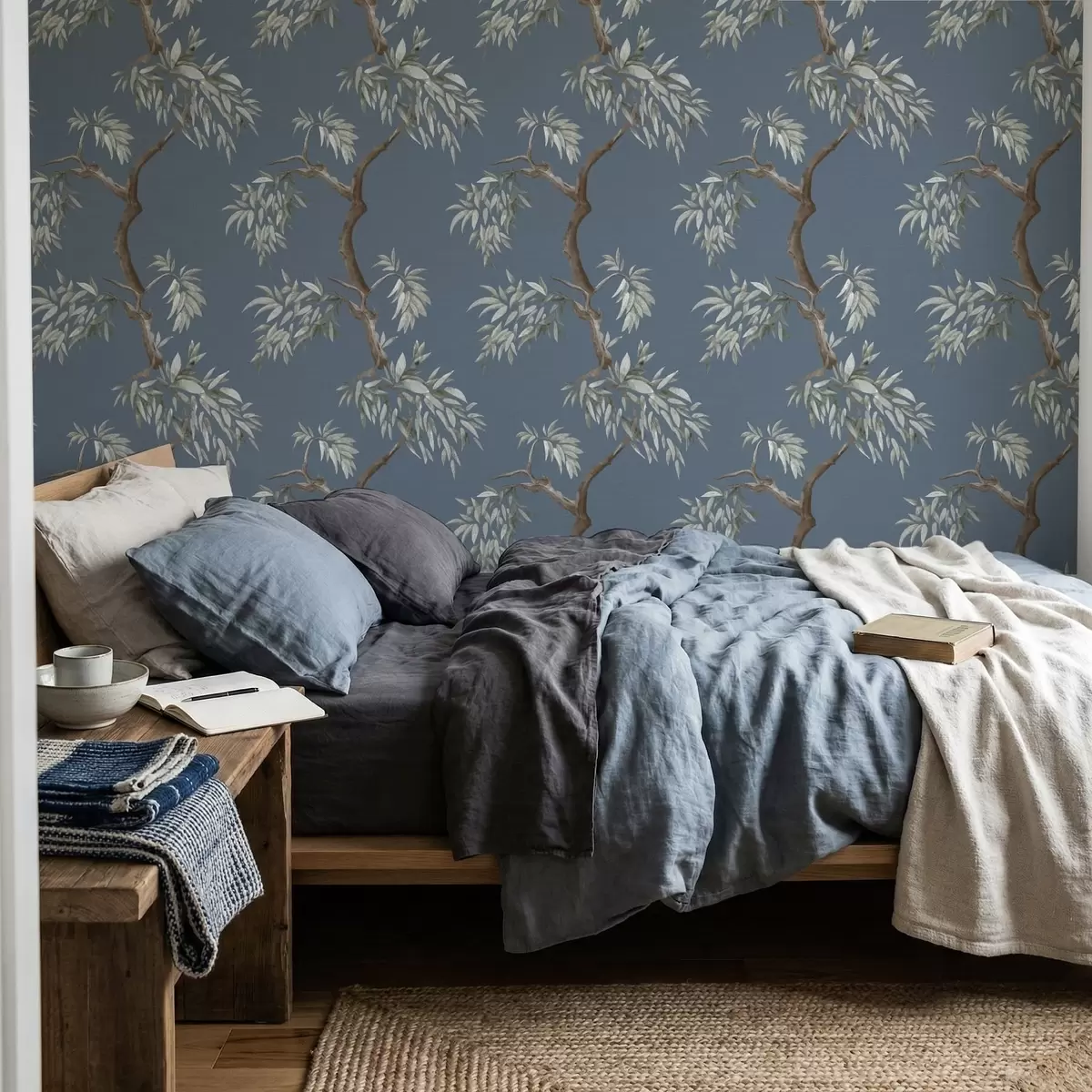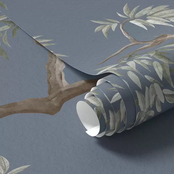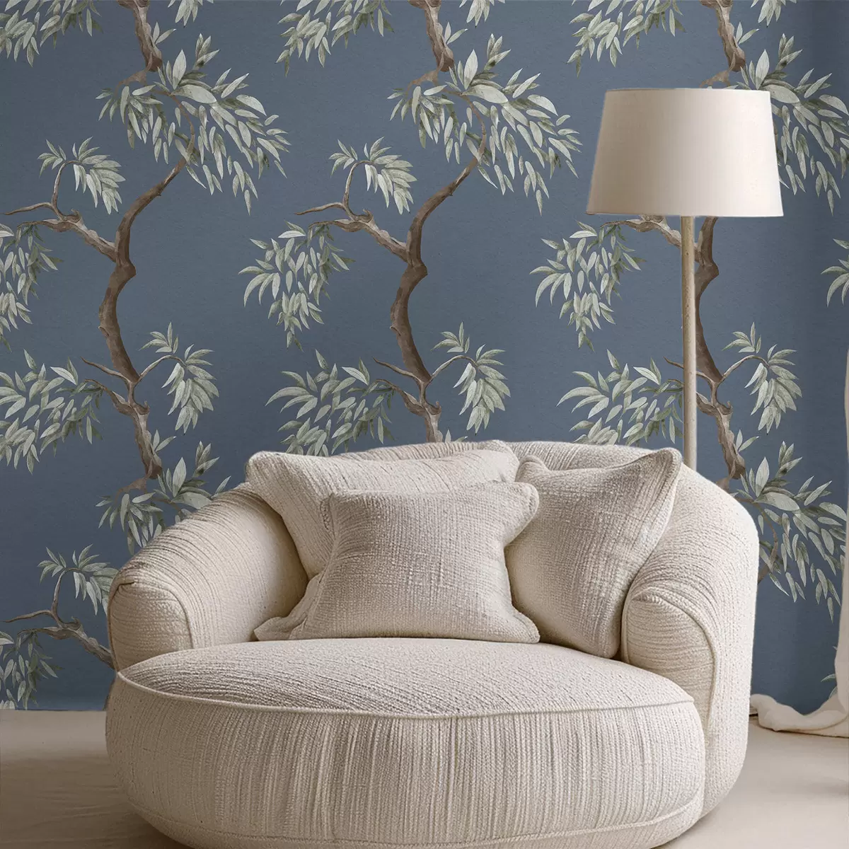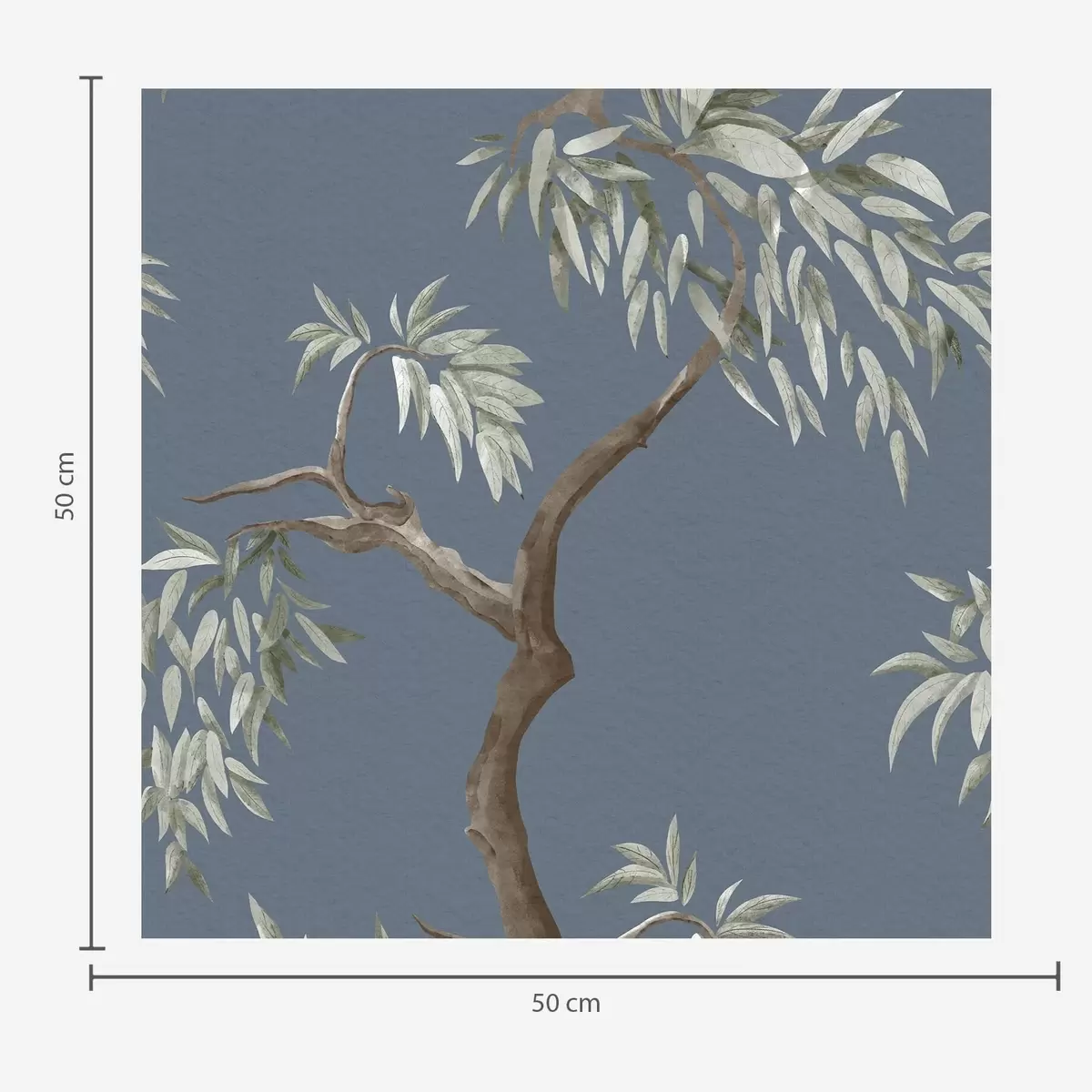 Tapet Ramură de copac cu frunze pe fundal albastru Nr. a01117