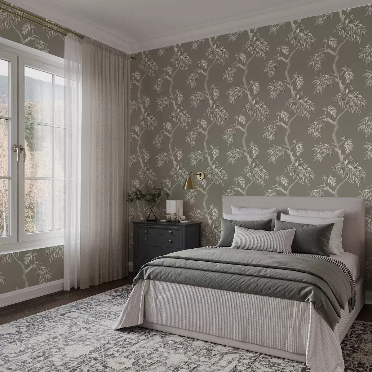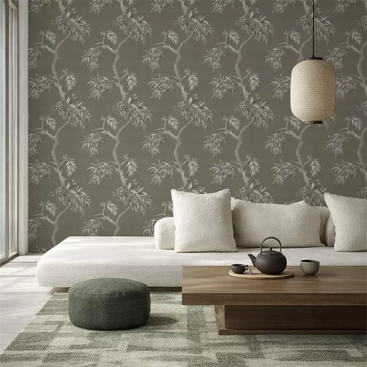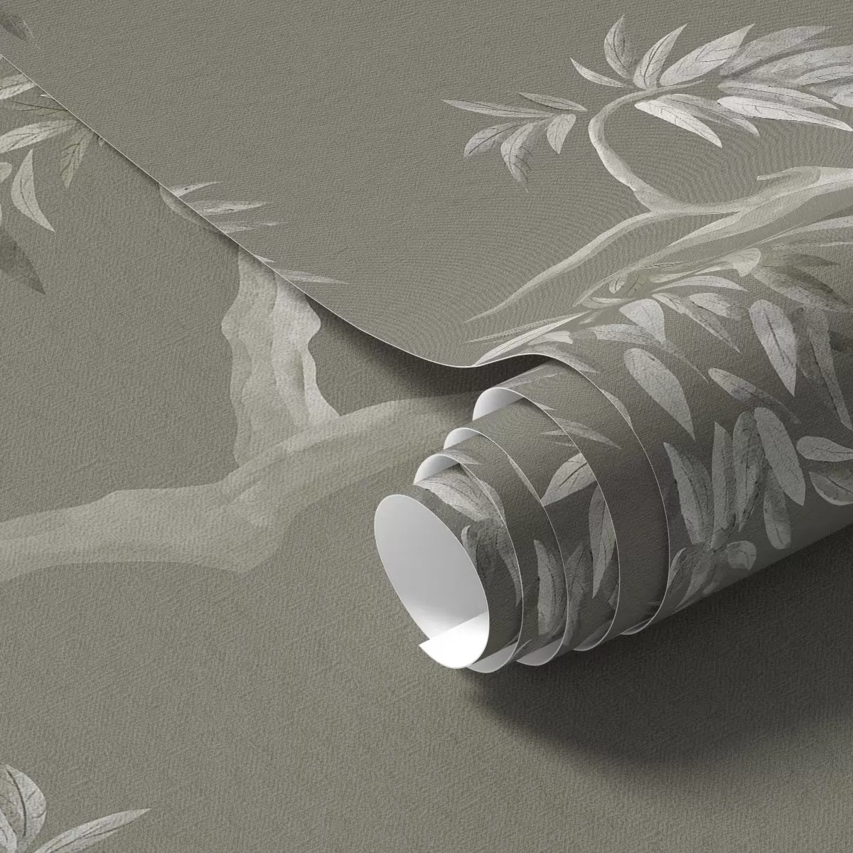 Tapet Ramură ușoară cu frunze pe fundal măslin Nr. a01117v1
