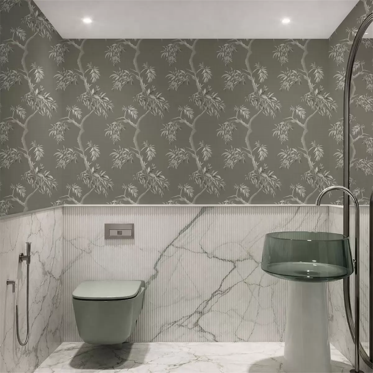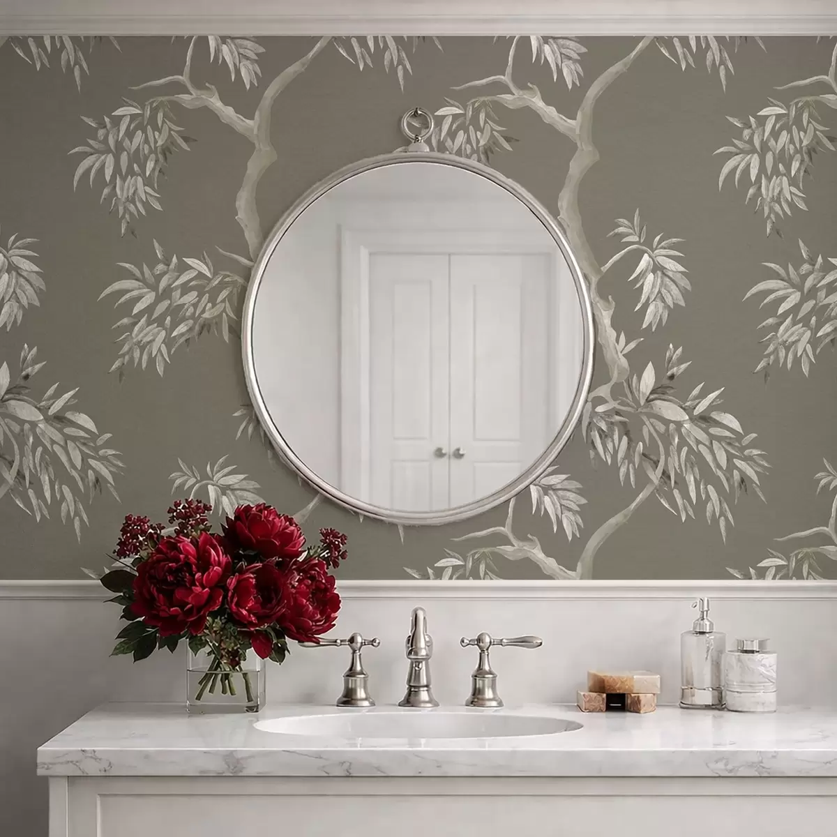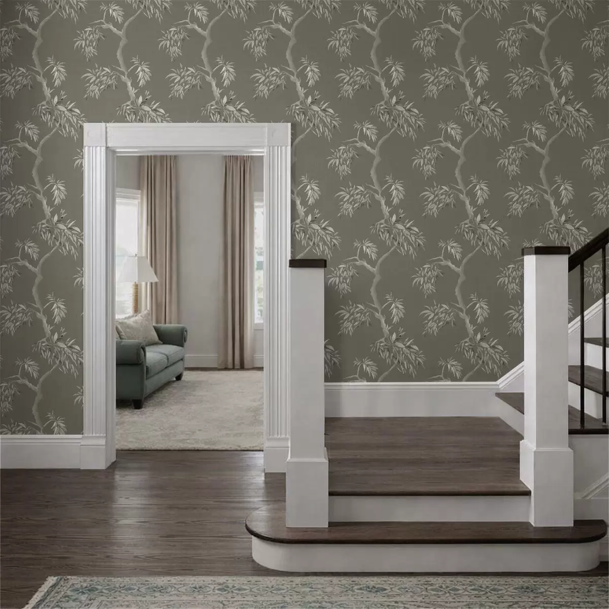 Tapet Ramură ușoară cu frunze pe fundal măslin Nr. a01117v1