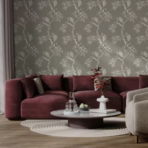 Tapet Ramură ușoară cu frunze pe fundal măslin Nr. a01117v1