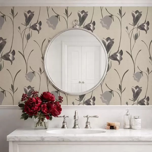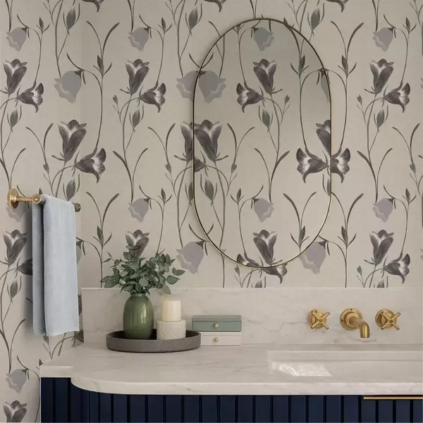 Tapet Flori gri în formă de clopoțel pe fond bej deschis Nr. a01119