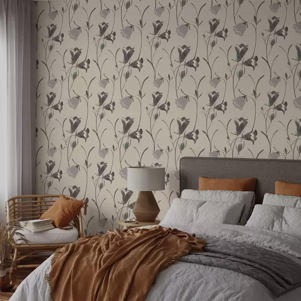 Tapet Flori gri în formă de clopoțel pe fond bej deschis Nr. a01119