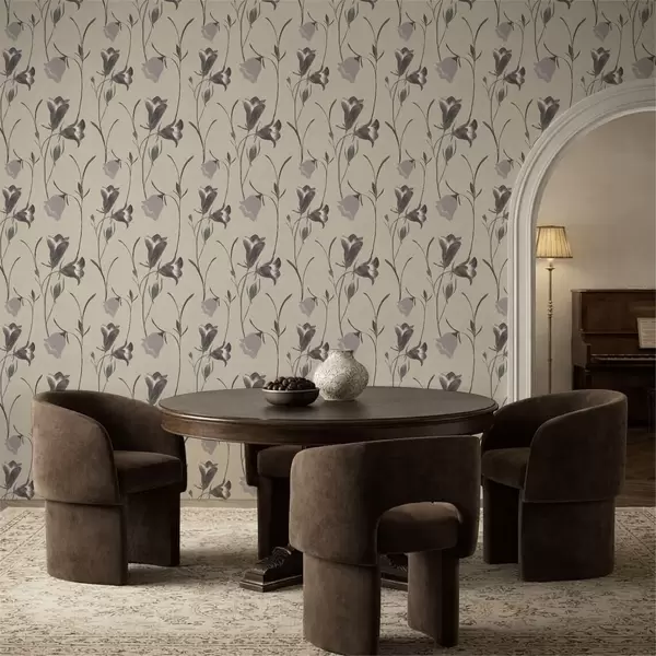 Tapet Flori gri în formă de clopoțel pe fond bej deschis Nr. a01119