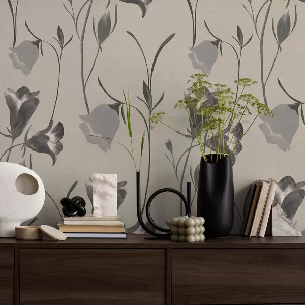 Tapet Flori gri în formă de clopoțel pe fond bej deschis Nr. a01119