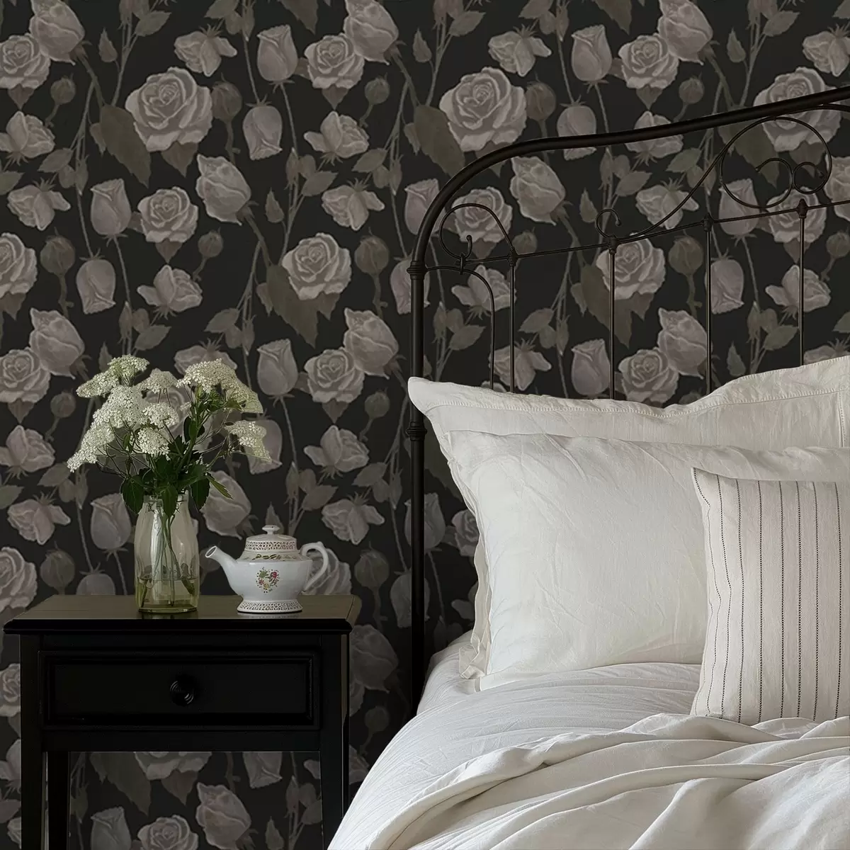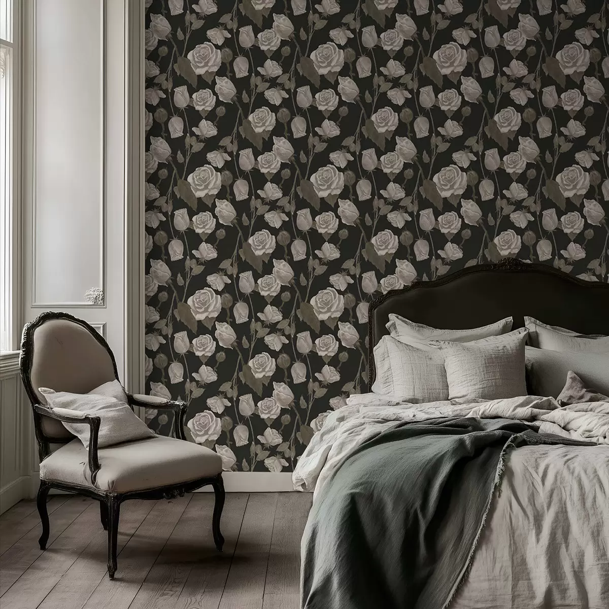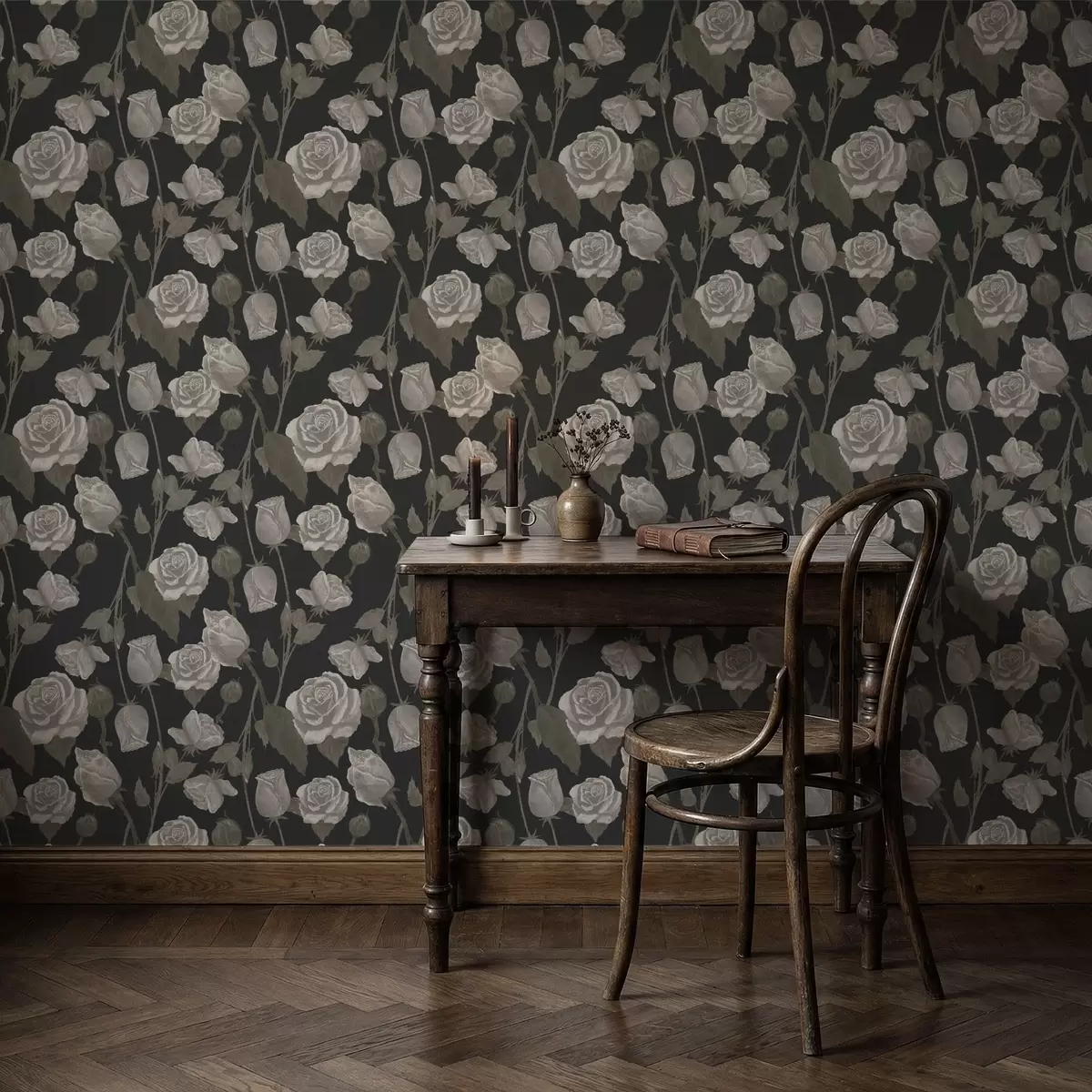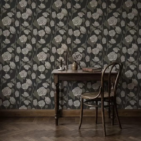 Tapet Model floral cu trandafiri pe fundal închis Nr. a01123
