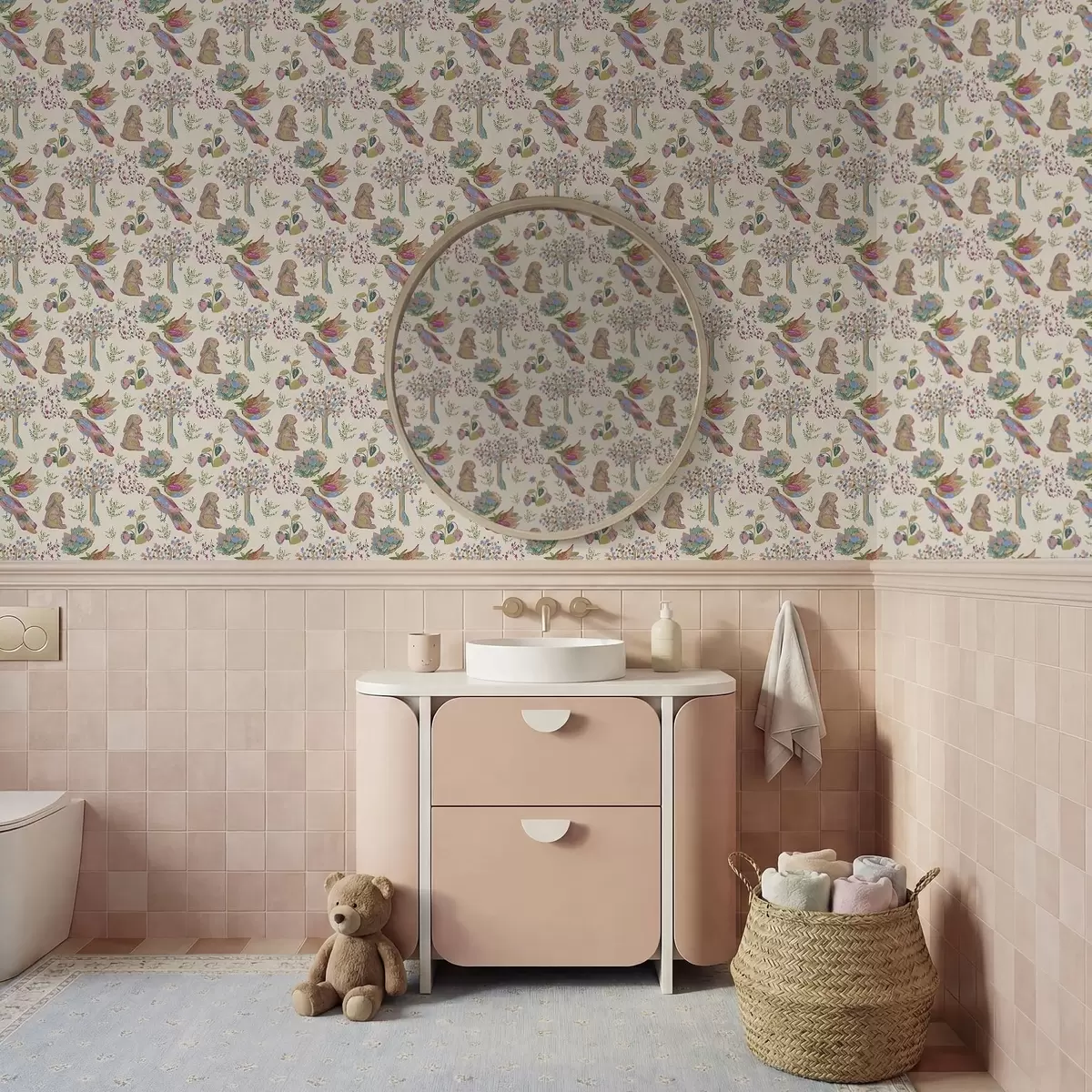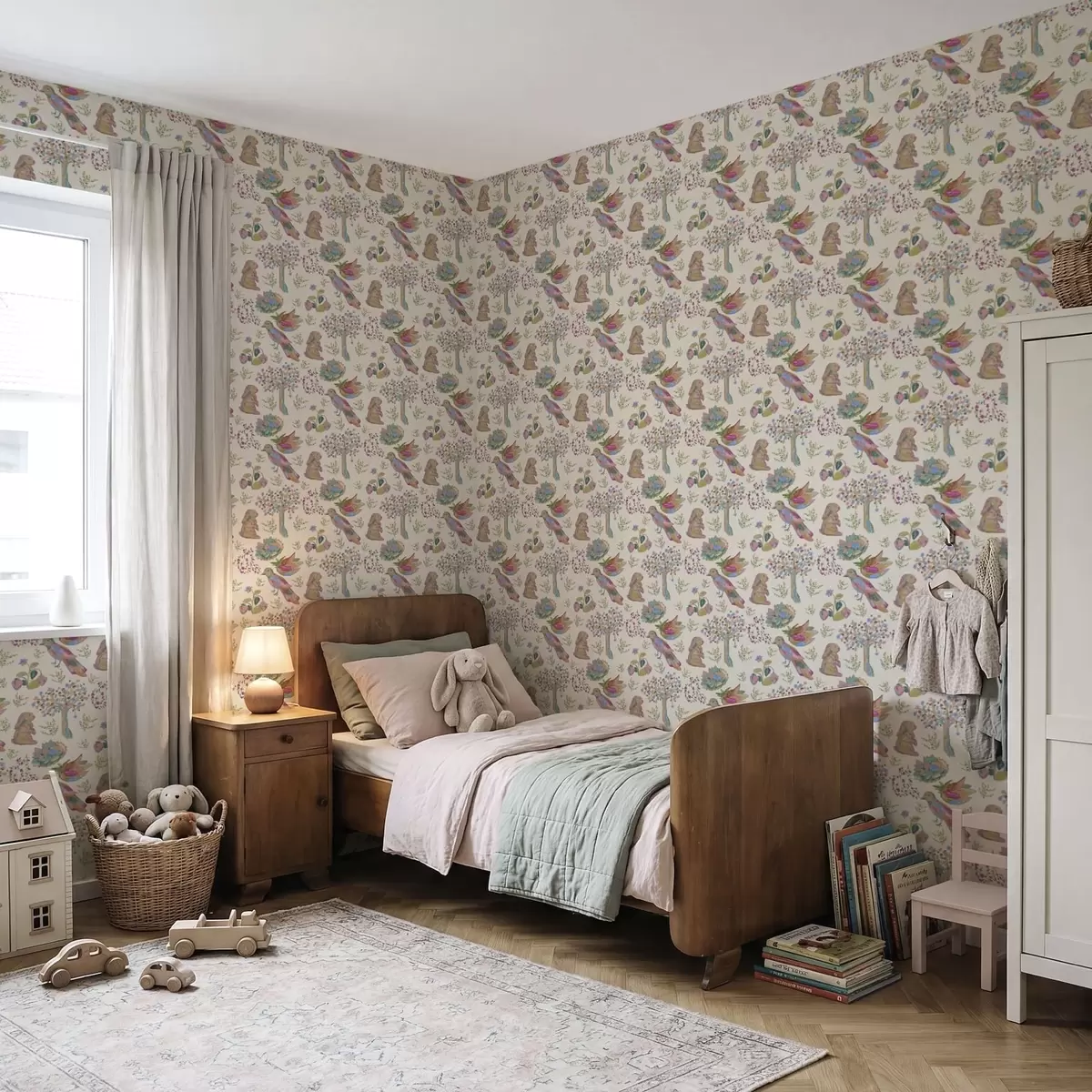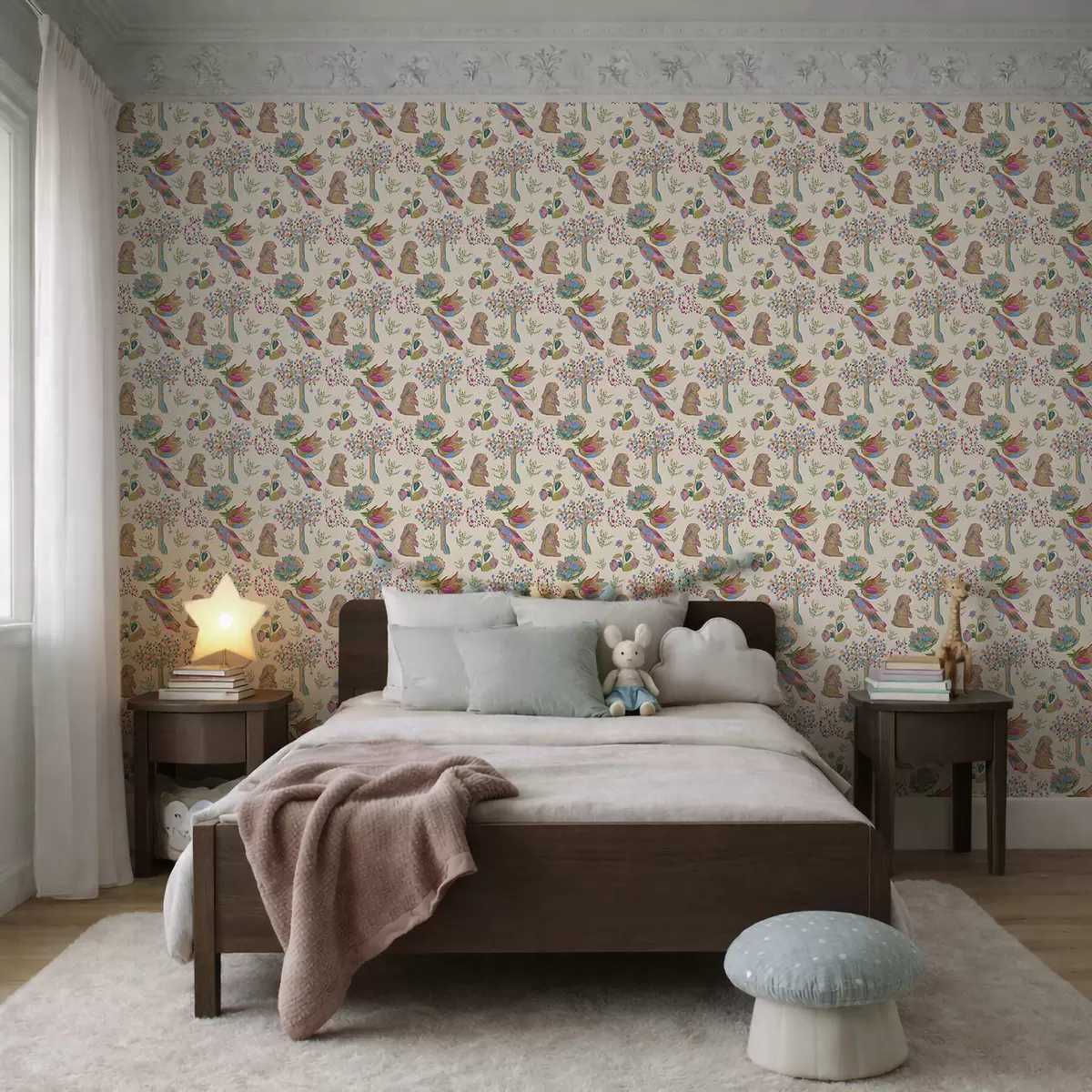 Tapet Model colorat pentru copii cu păsări și iepuri Nr. a01127