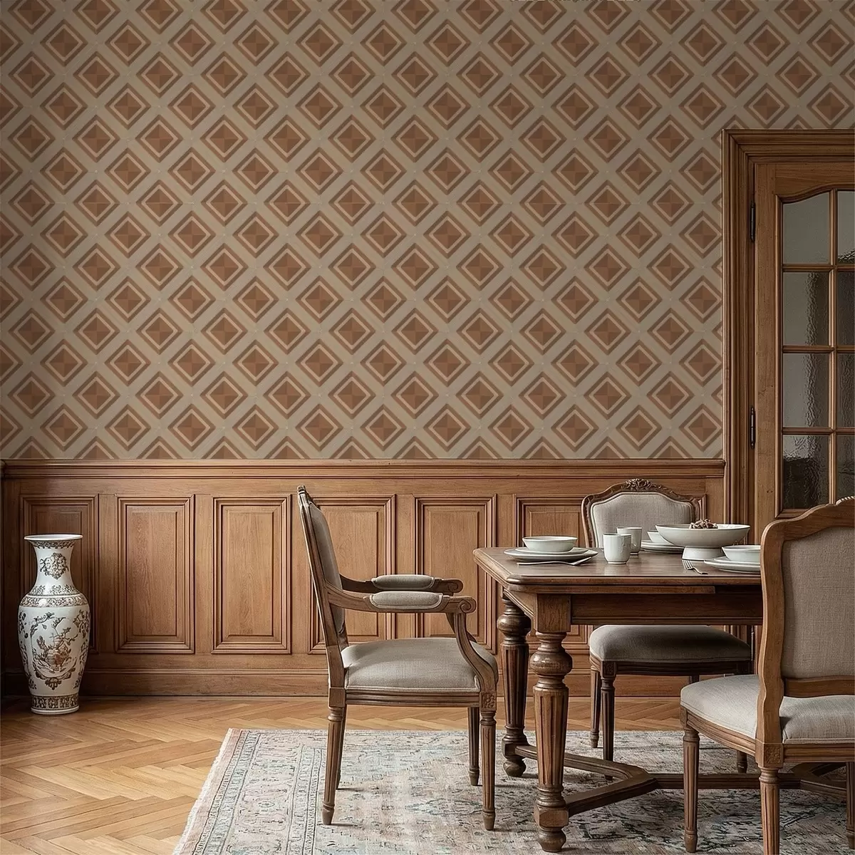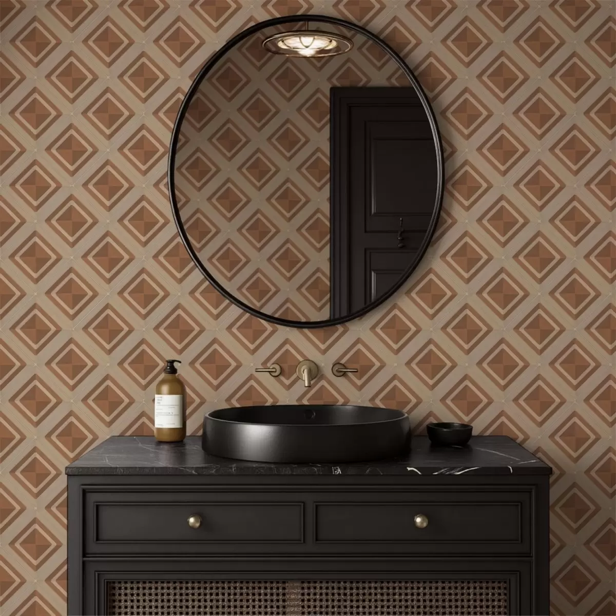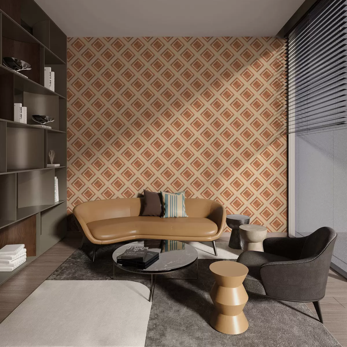 Tapet Model geometric cu romburi în nuanțe de teracotă Nr. a01128