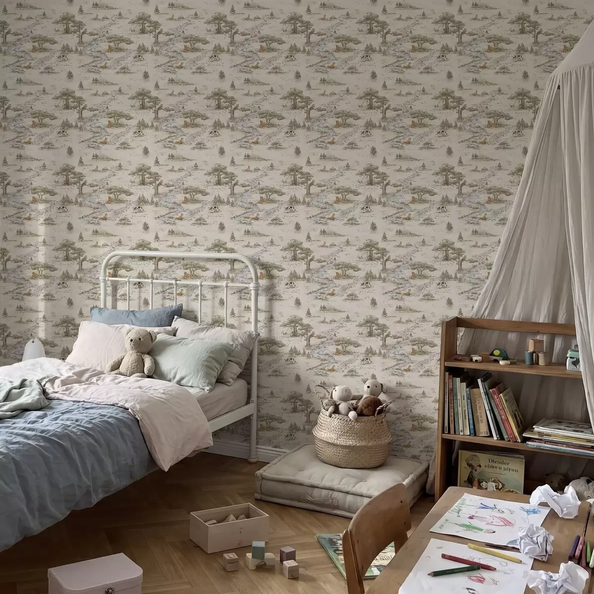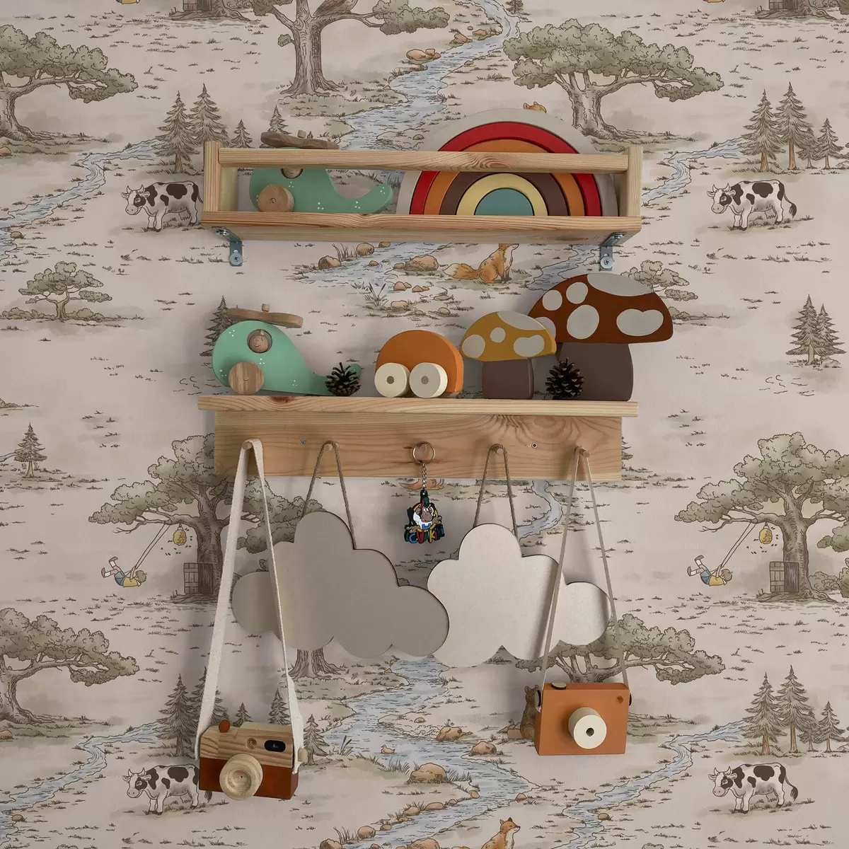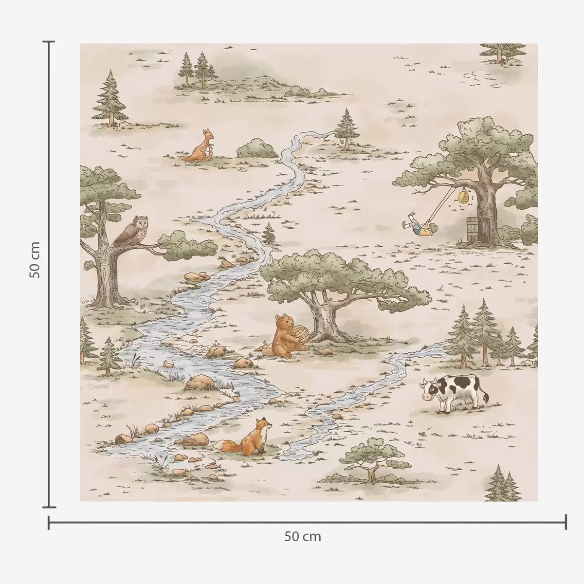 Tapet Ilustrație naturalistă cu animale și un râu Nr. a01157