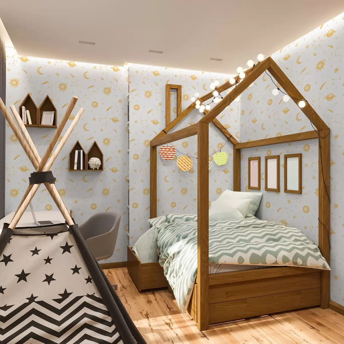 Tapet Obiecte cerești și stele în stil delicat Nr. a01163