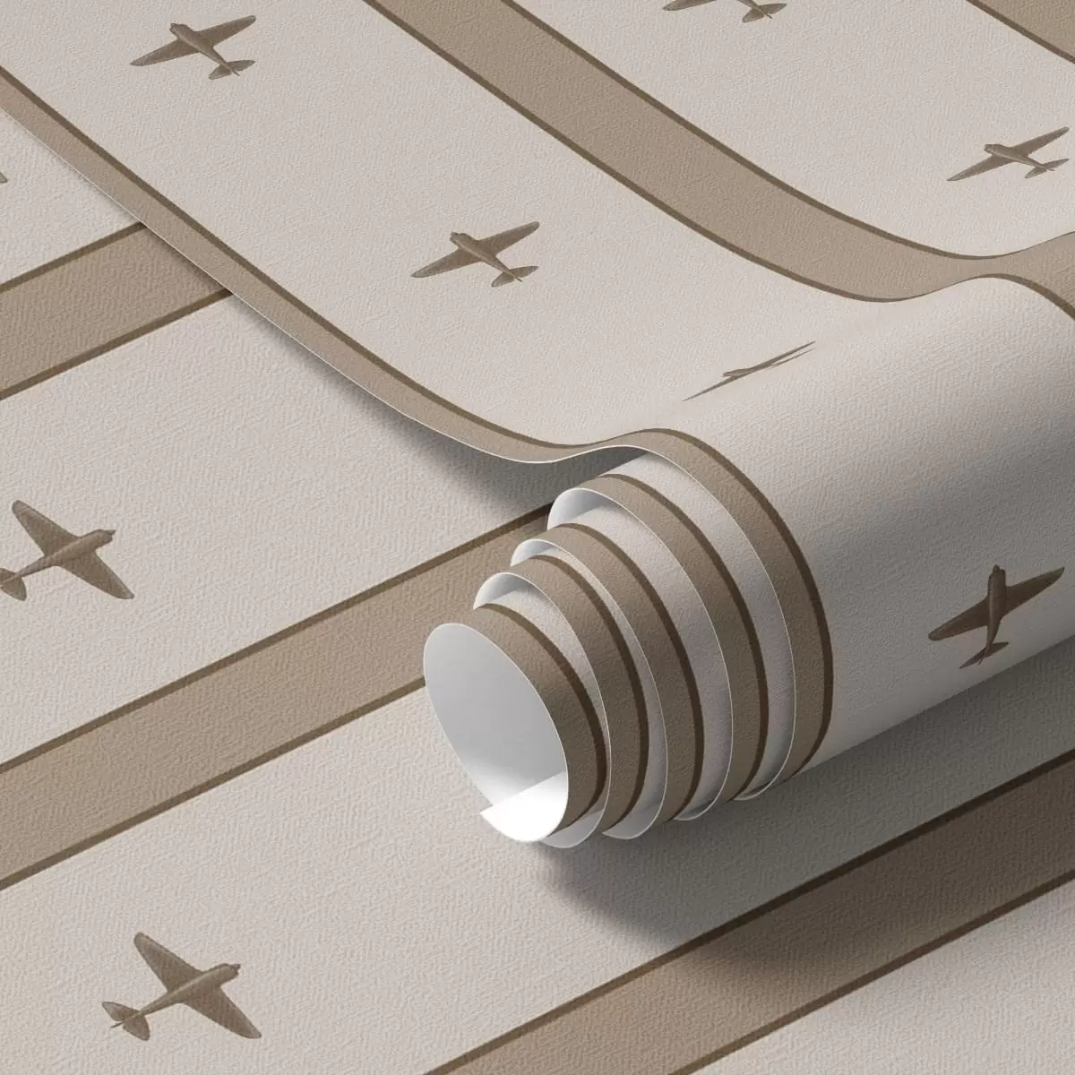 Tapet Avioane mici cu dungi pe fond maro Nr. a01171v2