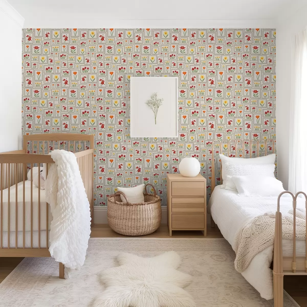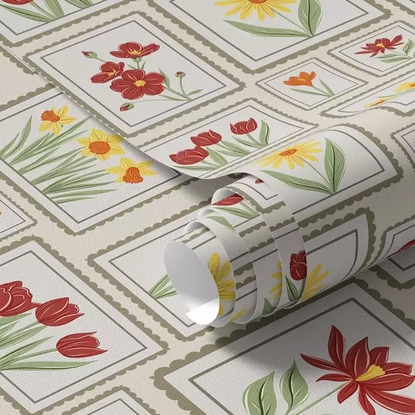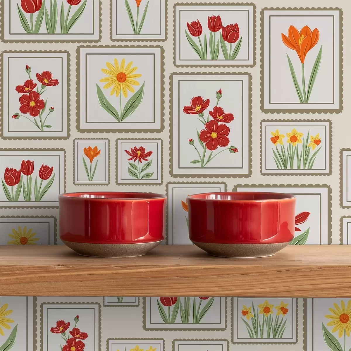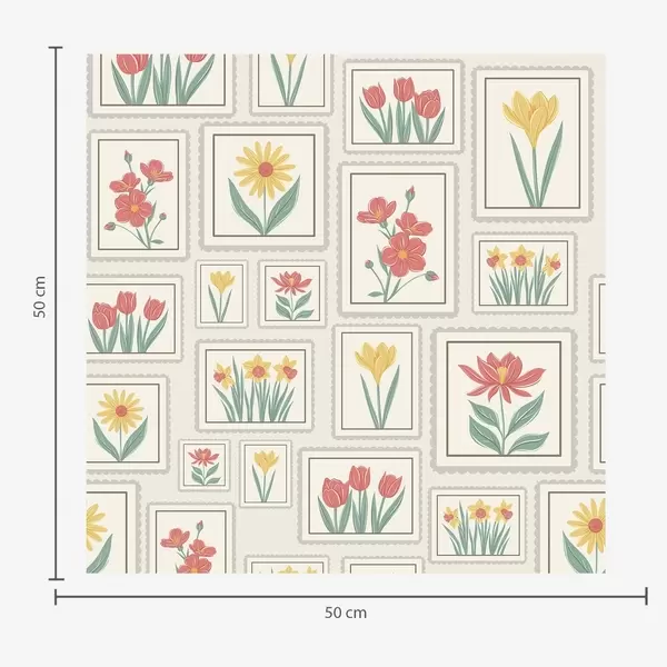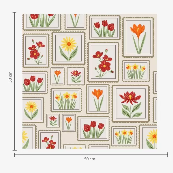 Tapet Ilustrații florale înrămate, în nuanțe calde Nr. a01173