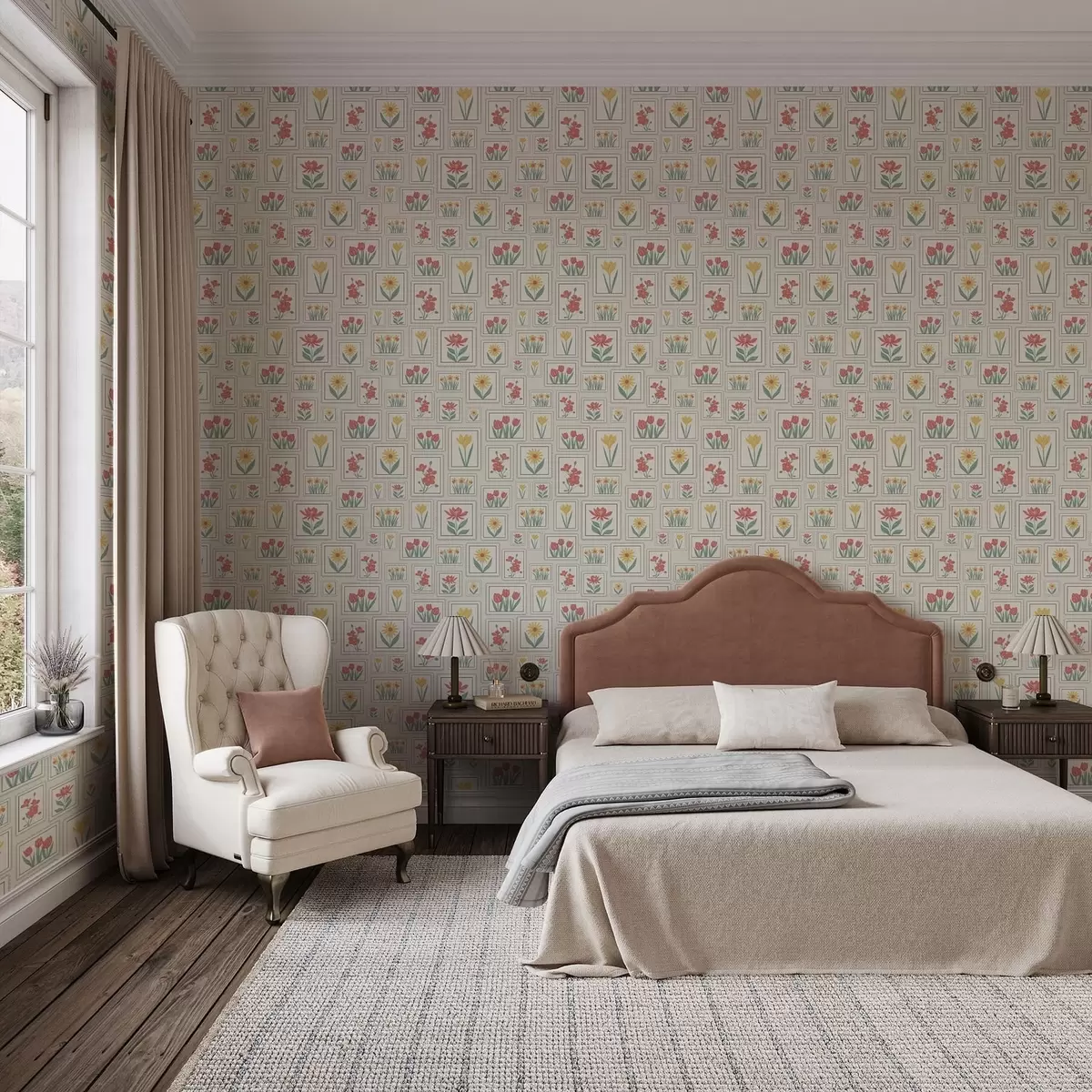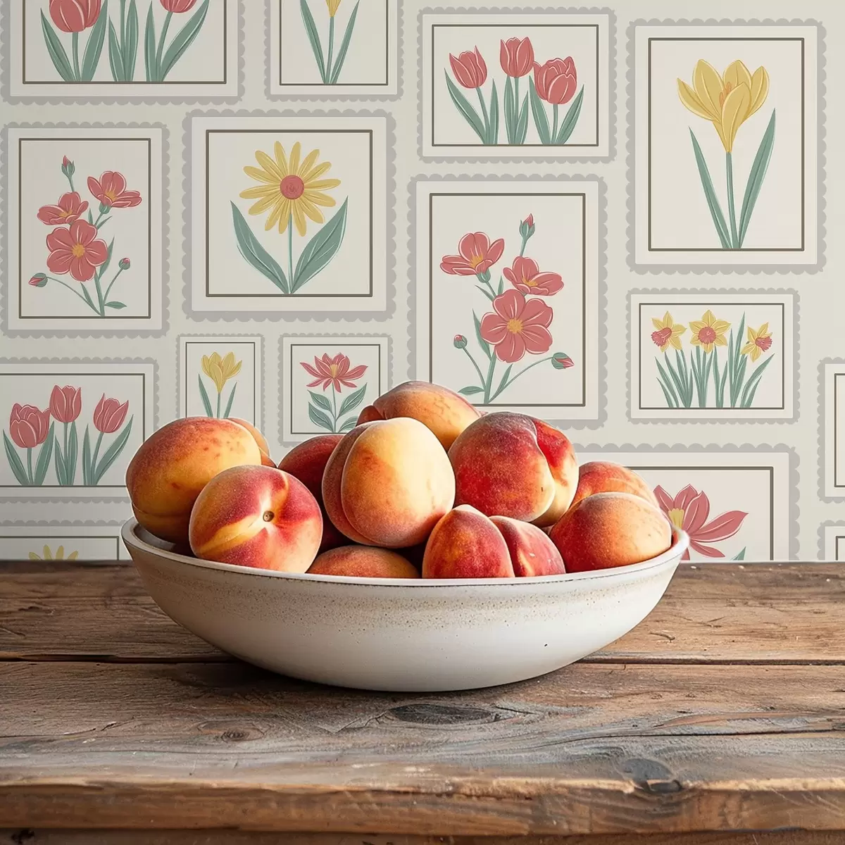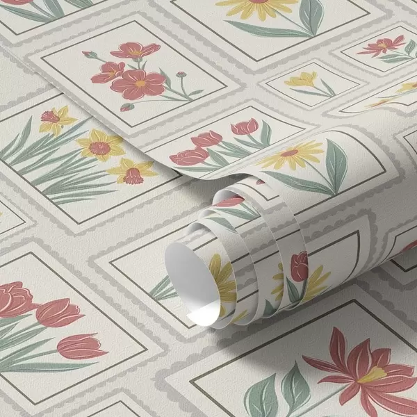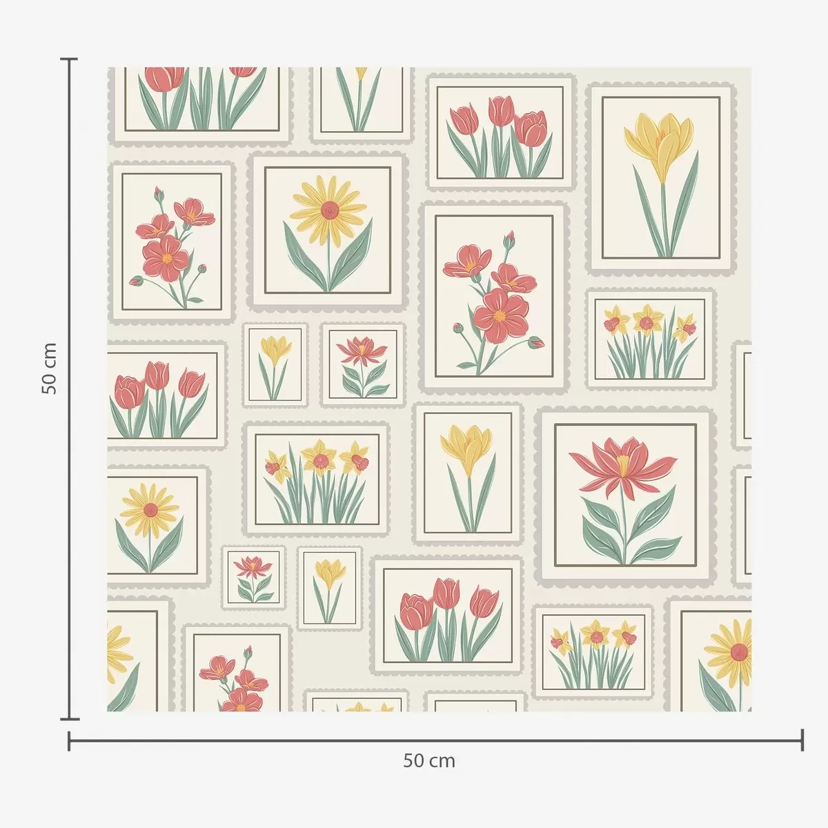 Tapet Ilustrații florale înrămate pe fundal deschis Nr. a01173v1