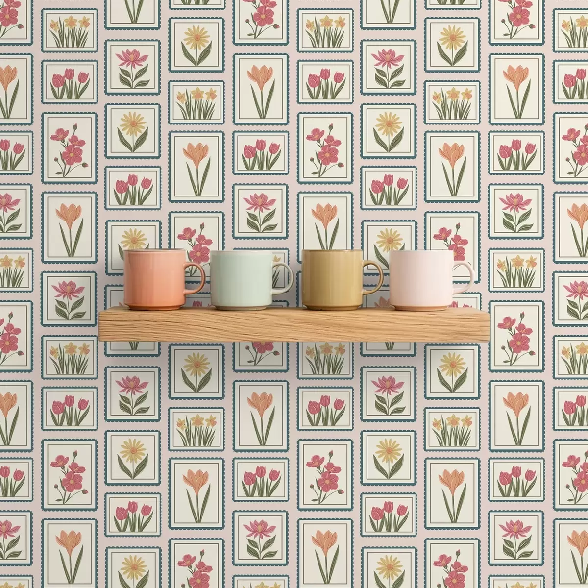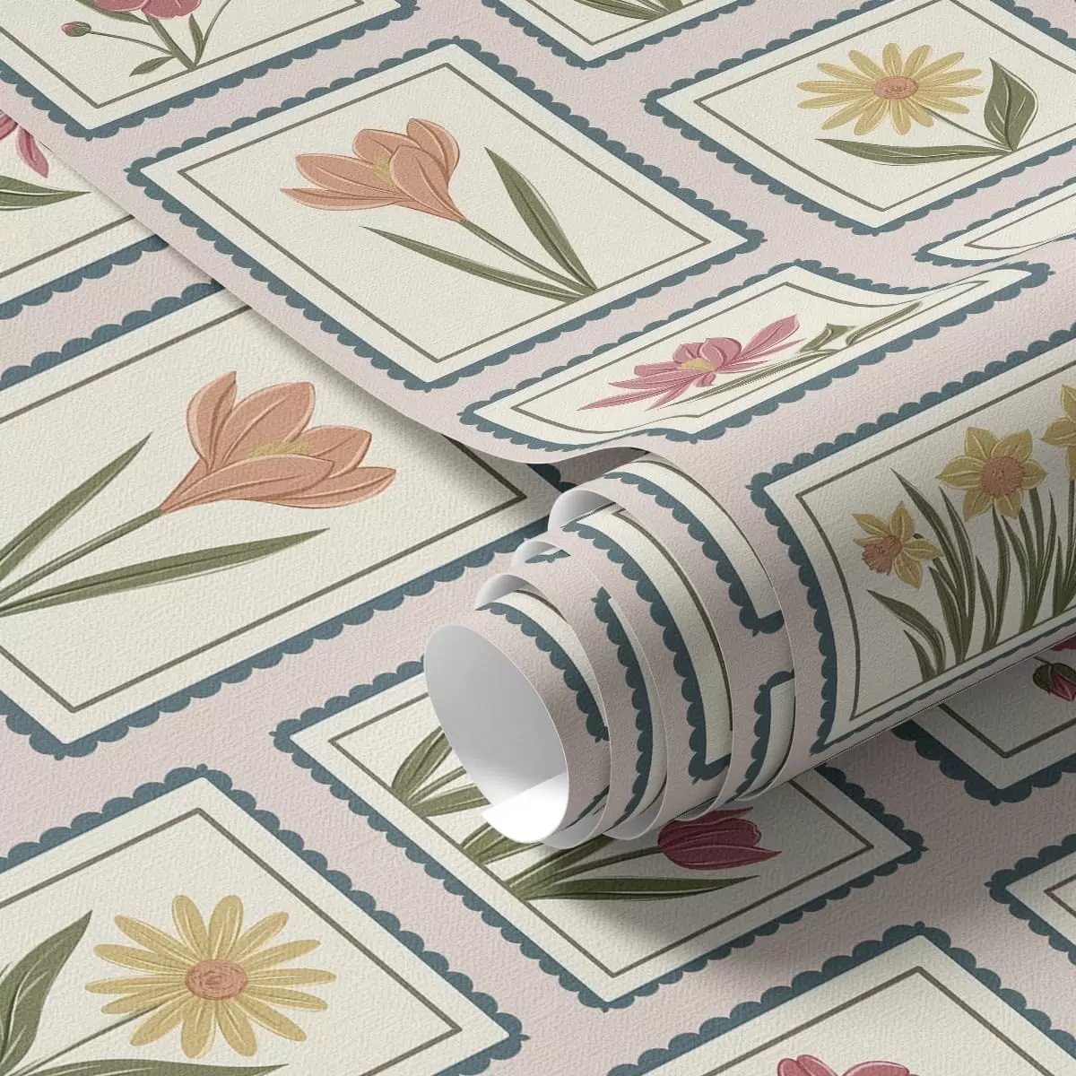 Tapet Ilustrații florale înrămate, cu chenare Nr. a01174