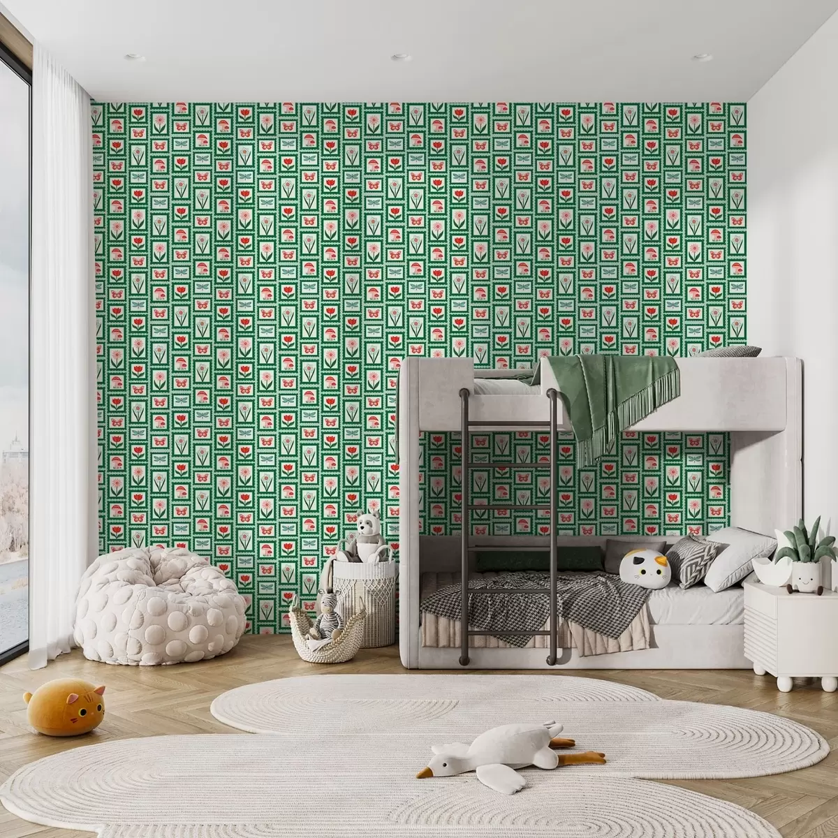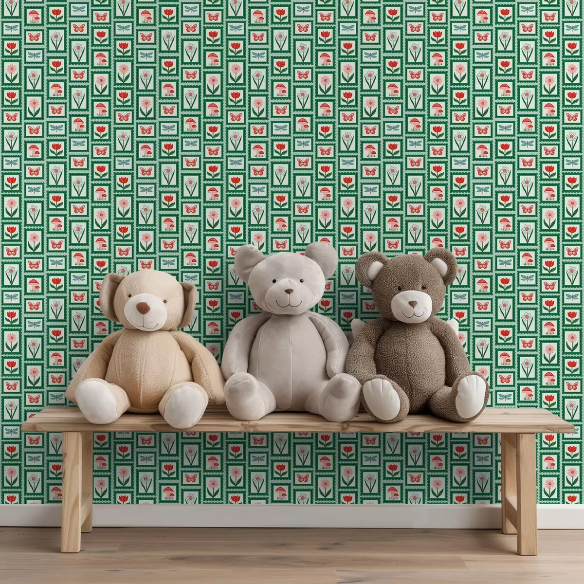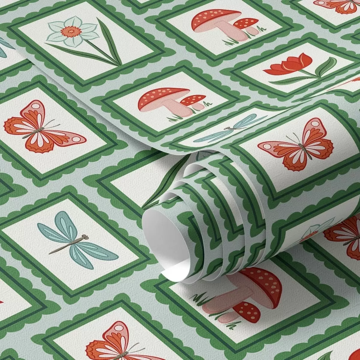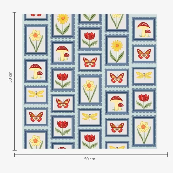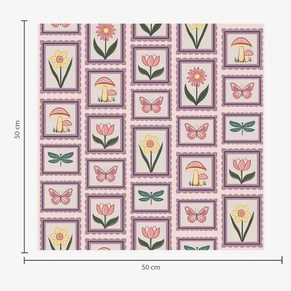 Tapet Flori, ciuperci și fluturi înrămate Nr. a01175