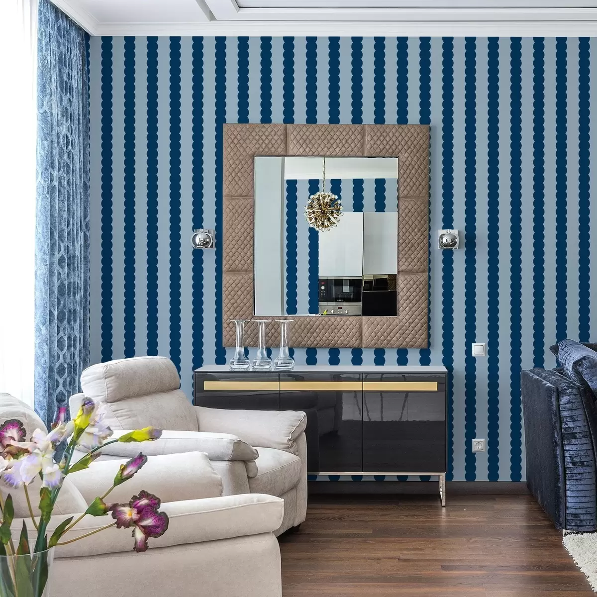 Tapet Dungi ondulate de culoare albastru închis, în stil minimalist Nr. a01182v3