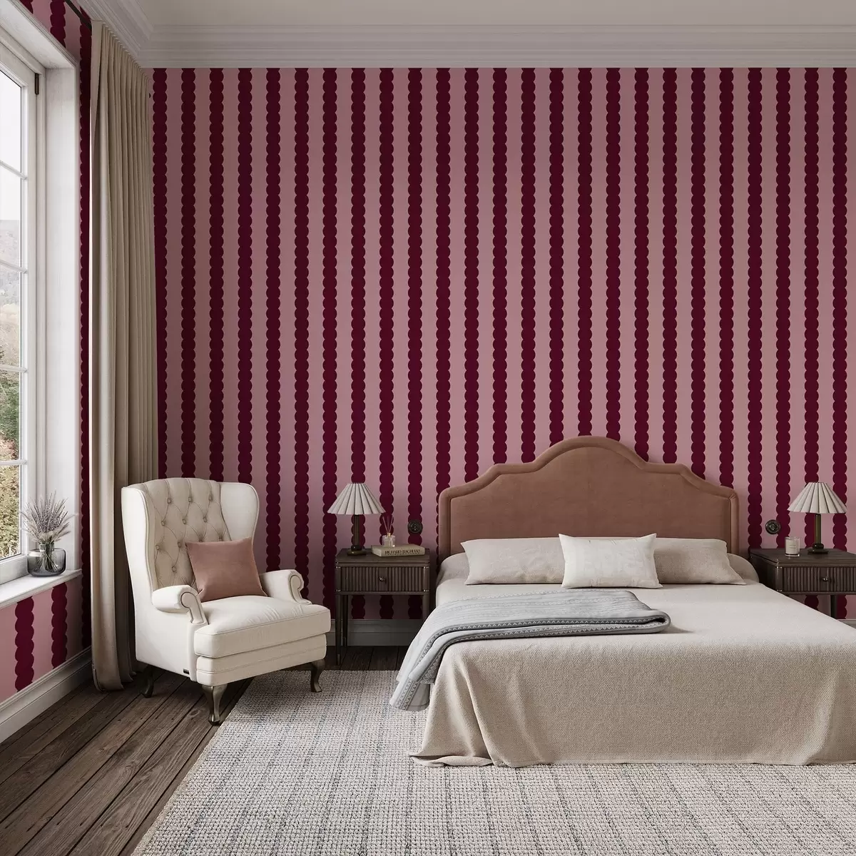 Tapet Dungi ondulate în nuanțe de burgund, în stil minimalist Nr. a01182v5